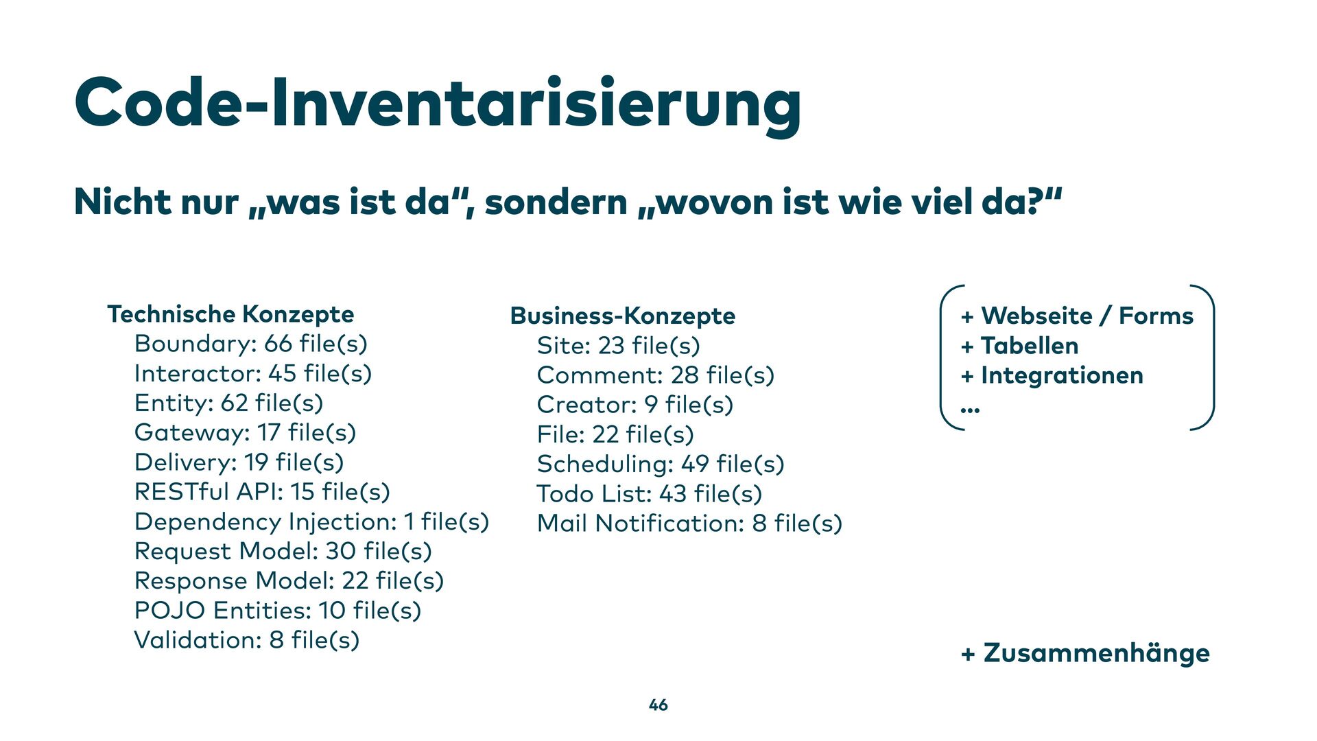 18. Code-Inventarisierung 46 Nicht nur „was ist da“, sondern „wovon ist