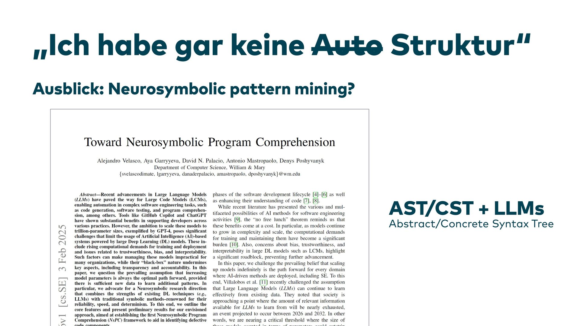 24. „Ich habe gar keine Auto Struktur“ 56 Ausblick: Neurosymbolic pattern