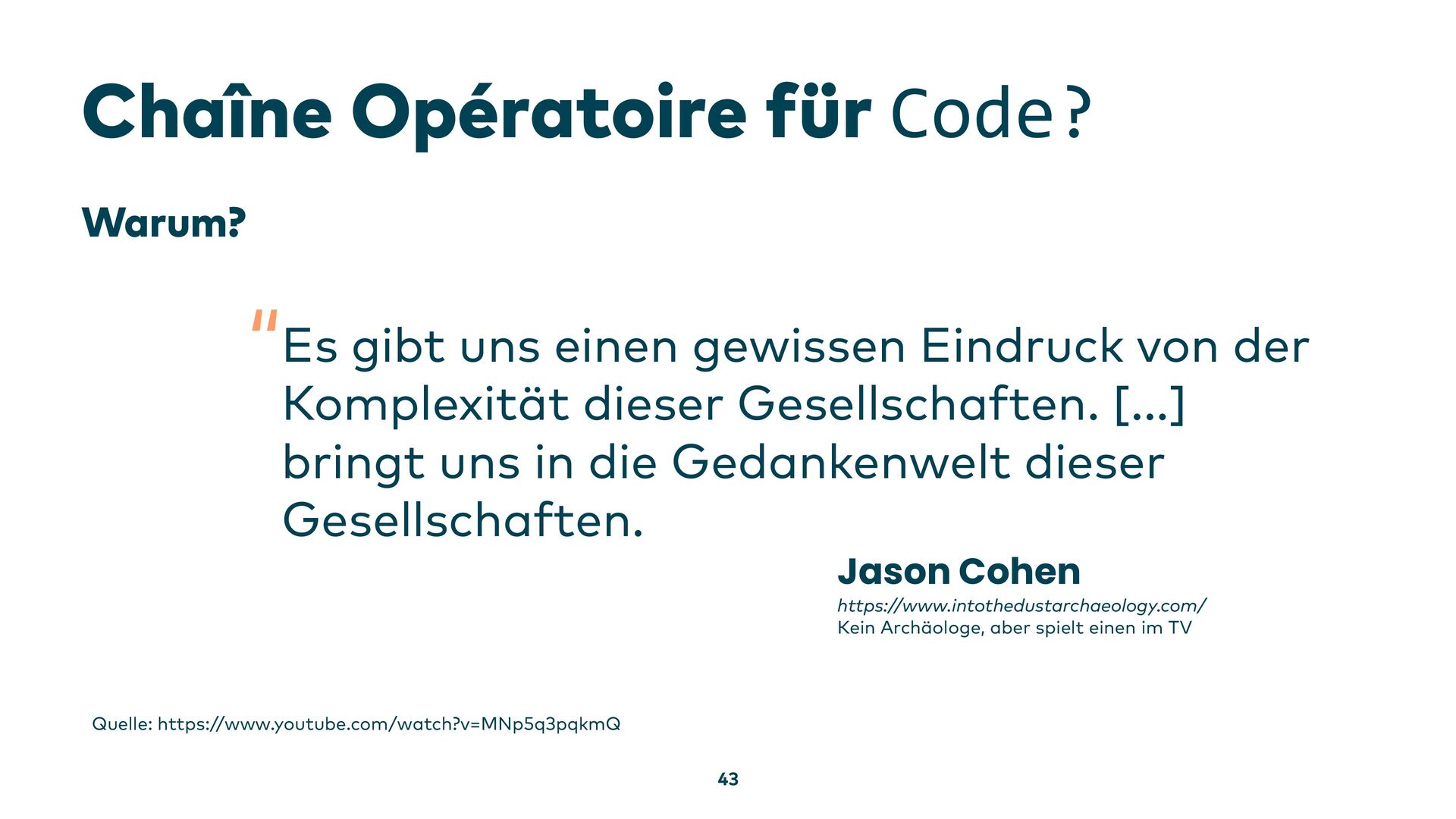 26. Chaîne Opératoire für Code? Warum? Es gibt uns einen gewissen