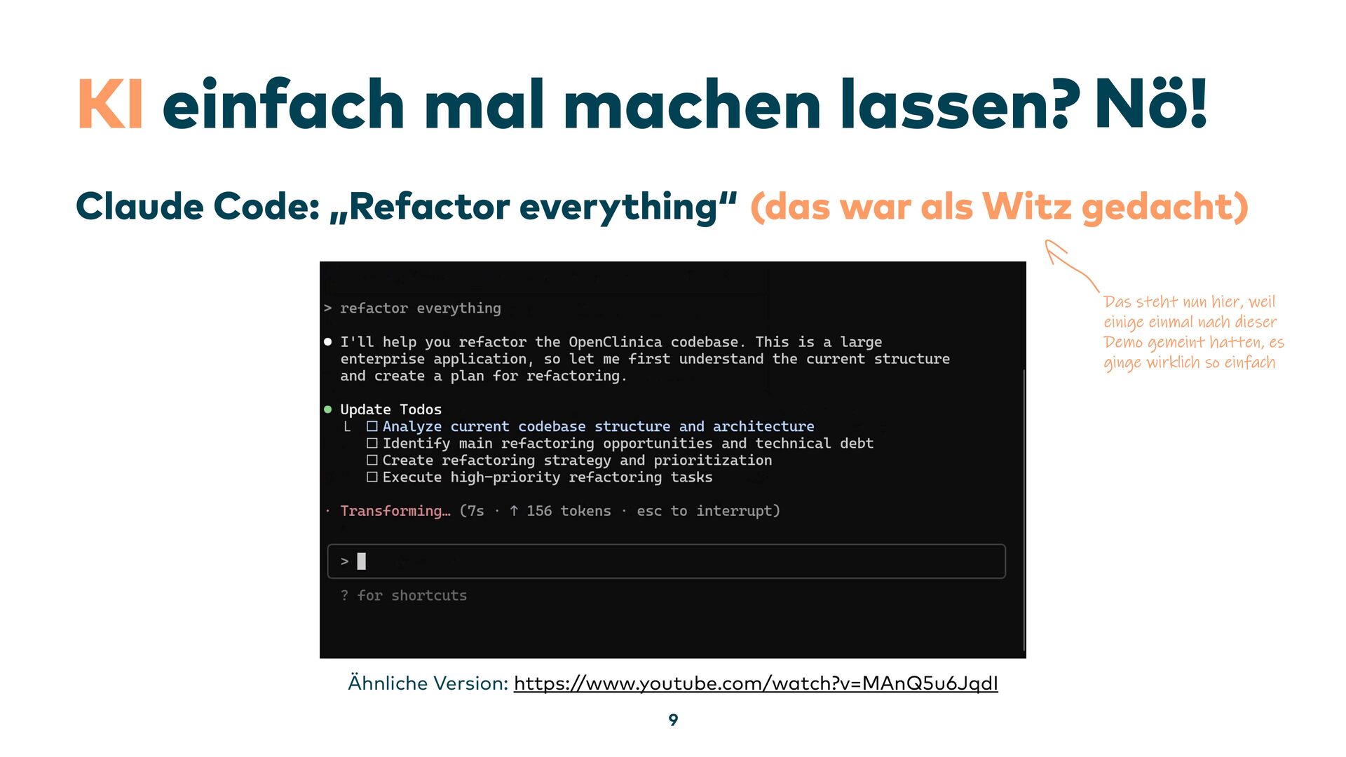6. KI einfach mal machen lassen? 9 Claude Code: „Refactor everything“