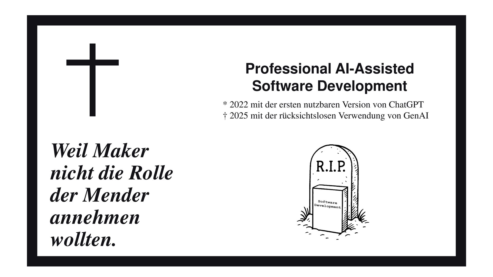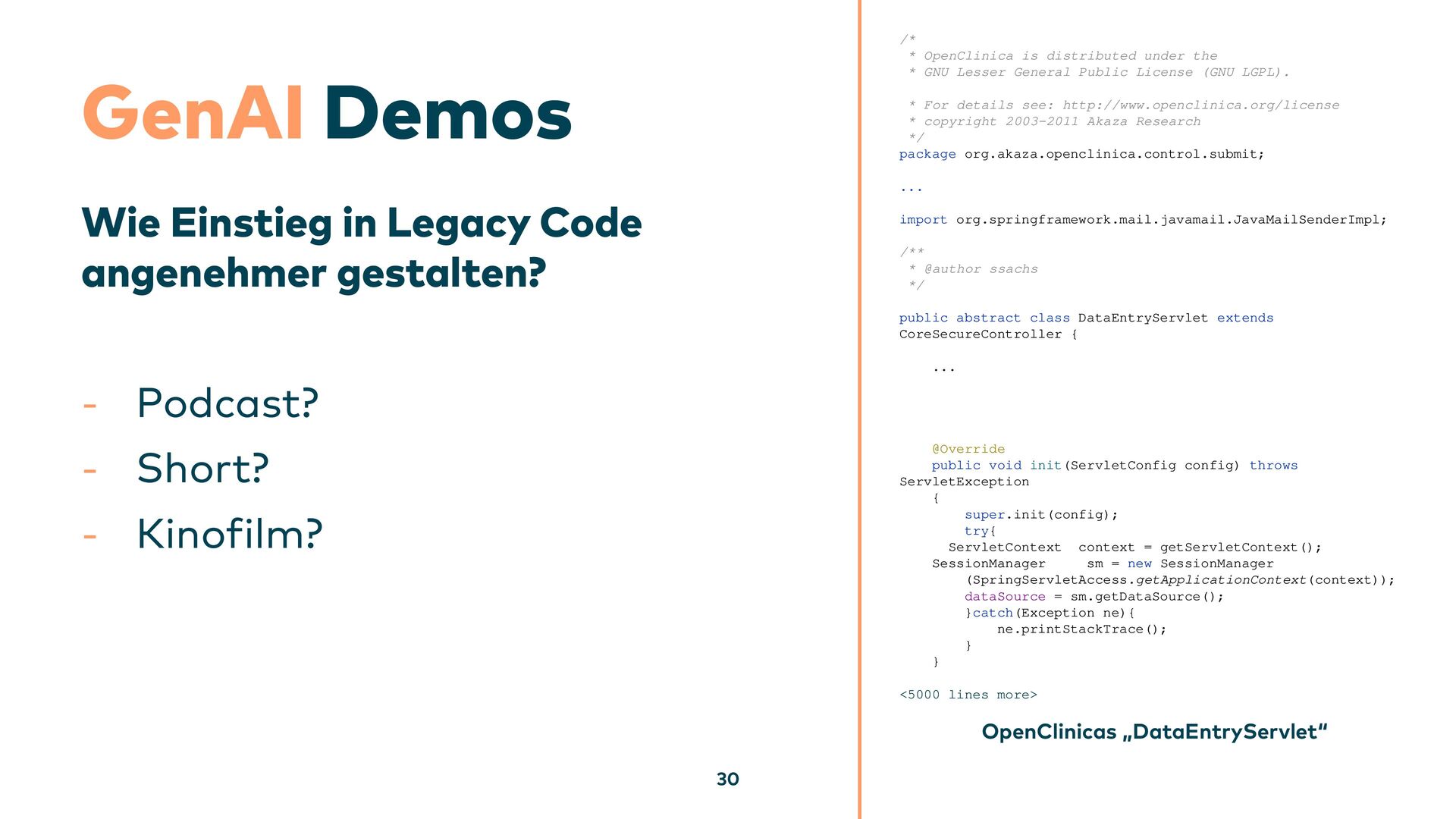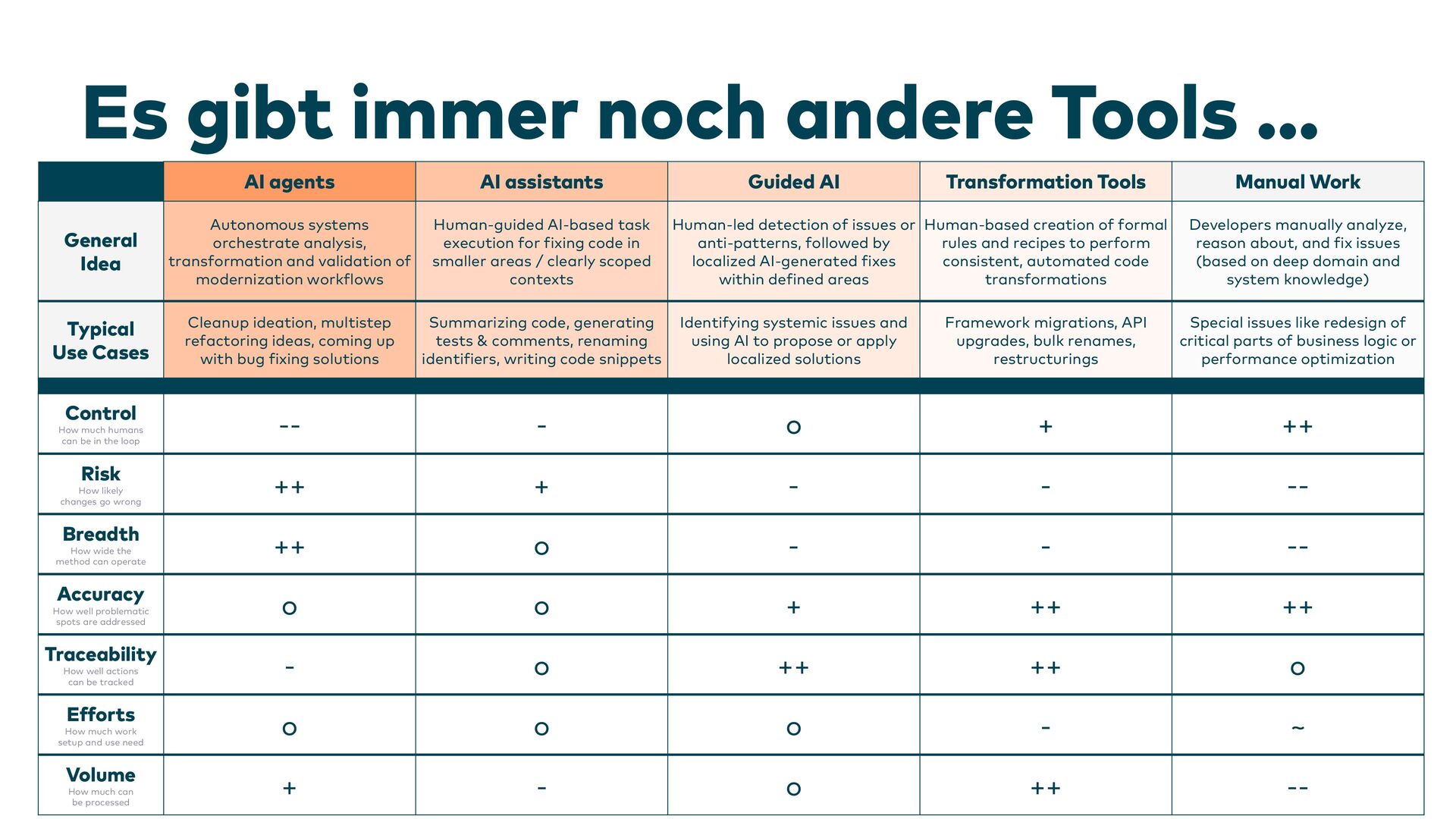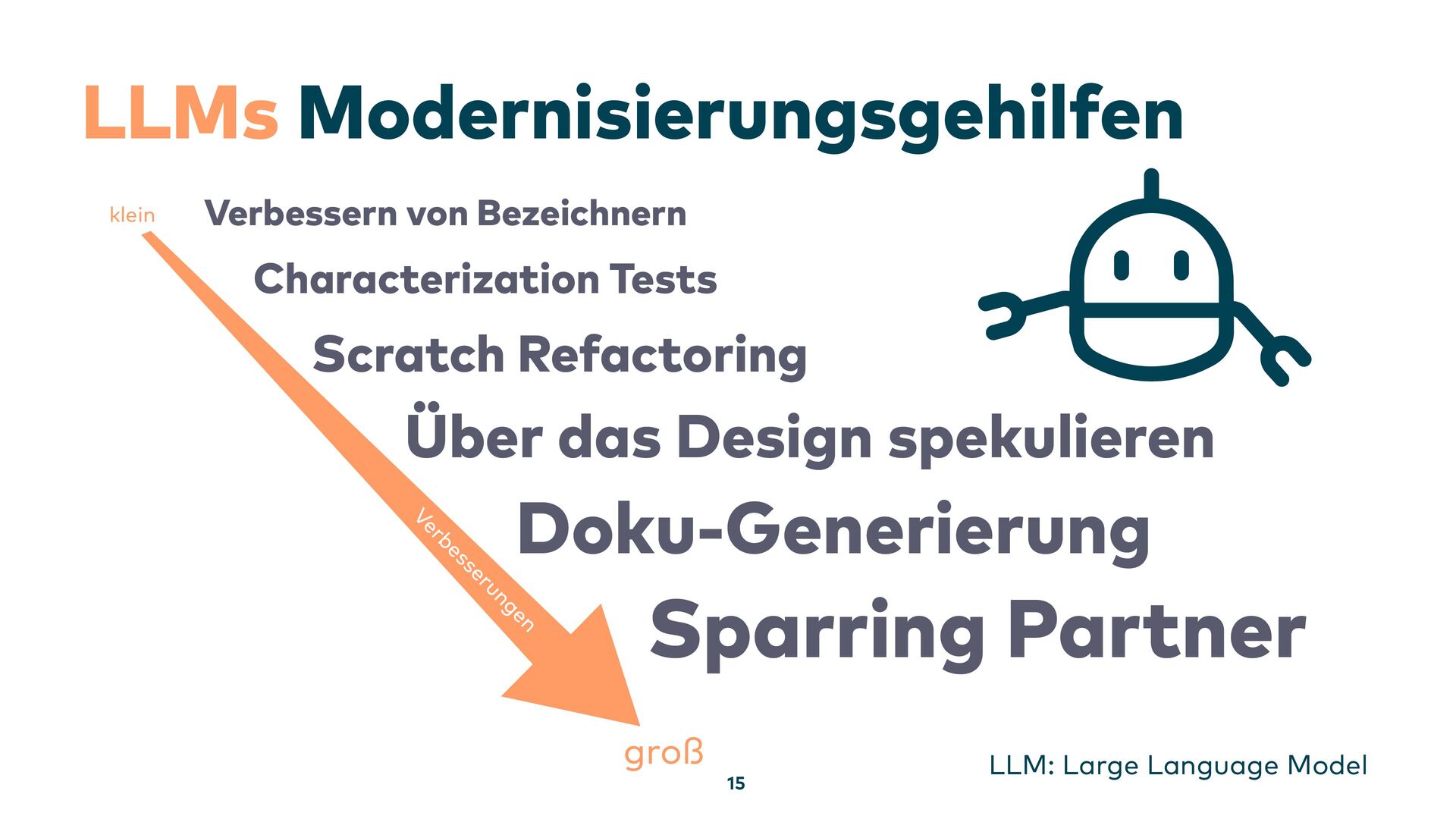Neuen Code mit Large Language Models zu erzeugen, ist für uns längst keine Neuheit mehr. Doch der Traum, alte Softwaresysteme per Knopfdruck mithilfe künstlicher Intelligenz zu modernisieren, ist noch weit entfernt. Alte Softwaresysteme sind – sagen wir – doch etwas spezieller. In diesem Vortrag zeige ich, wie generative KI (GenAI) in diesem Bereich dennoch schon heute sinnvoll eingesetzt werden kann, wo wir (noch) an Grenzen stoßen und wo bei der Zusammenarbeit mit unseren modernen KI-Kollegen ganz andere, unerwartete Effekte auftreten.