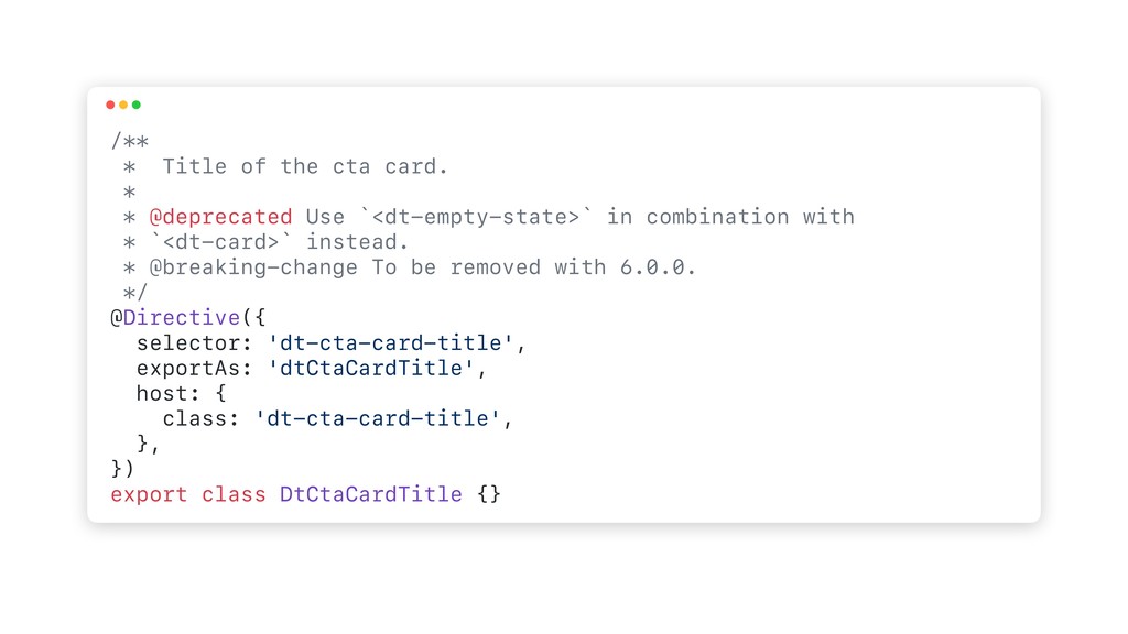 Use `<dt-empty-state>` in combination with * `<dt-card>` instead. * @breaking-change To be removed with 6.0.0. */ @Directive({ selector: 'dt-cta-card-title', exportAs: 'dtCtaCardTitle', host: { class: 'dt-cta-card-title', }, }) export class DtCtaCardTitle {}