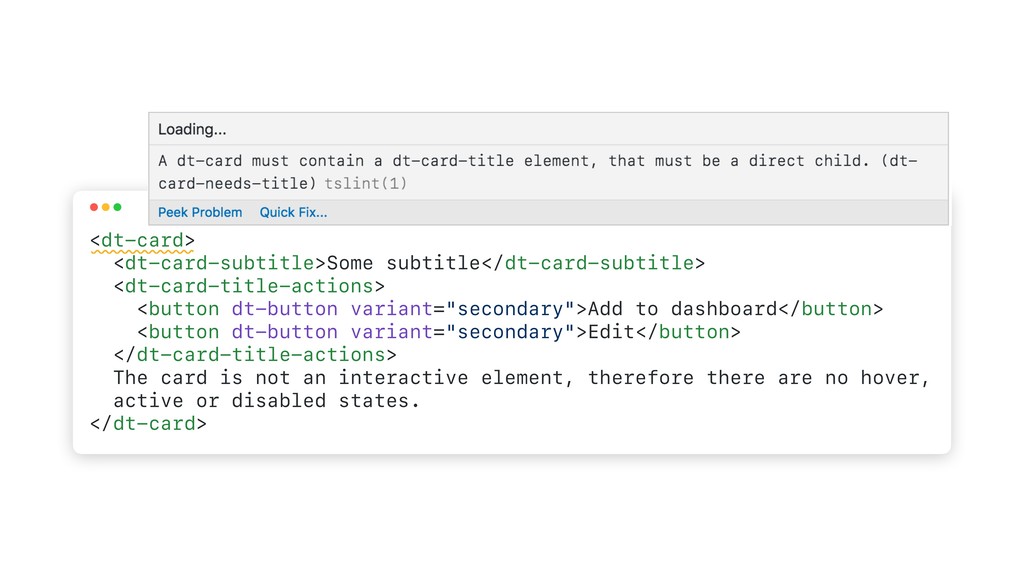 dt-button variant="secondary">Edit</button> </dt-card-title-actions> The card is not an interactive element, therefore there are no hover, active or disabled states. </dt-card>