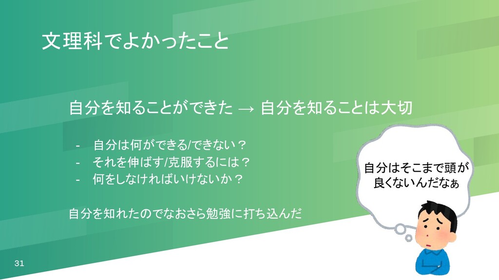 自分を知れたのでなおさら勉強に打ち込んだ 31 自分はそこまで頭が 良くないんだなぁ