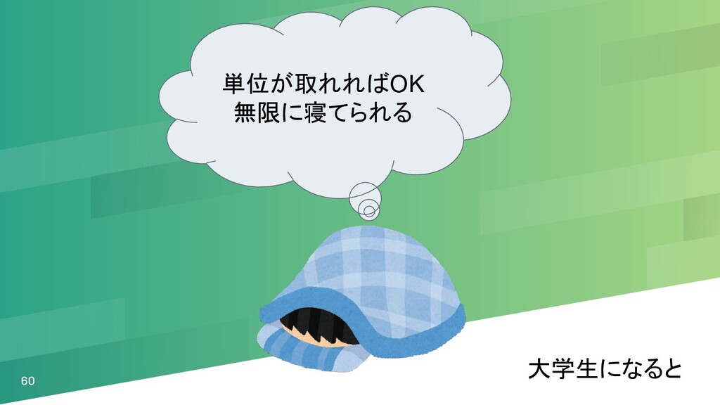 60 単位が取れればOK 無限に寝てられる 大学生になると