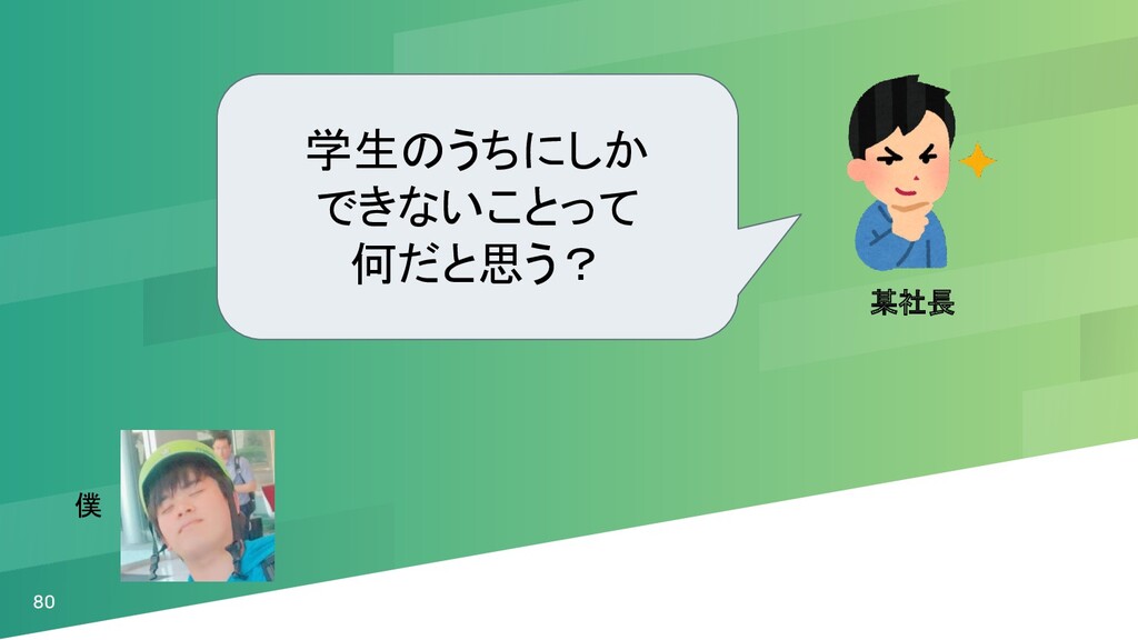 80 某社長 僕 学生のうちにしか できないことって 何だと思う?