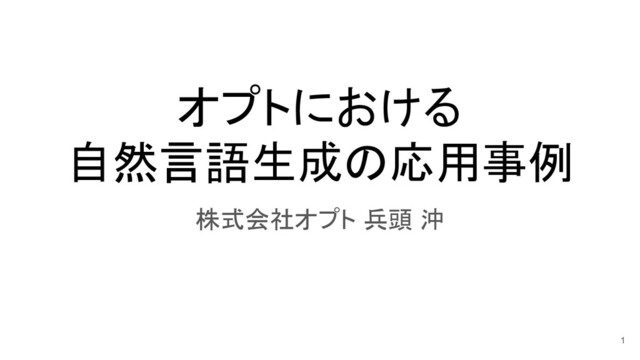 オプトにおける 自然言語生成の応用事例 株式会社オプト 兵頭 沖 1