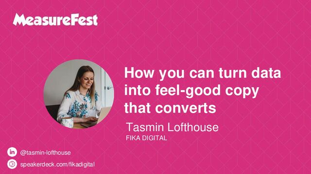 In this talk for the October edition of MeasureFest at brightonSEO 2024, Tasmin shares how she uncovers, crunches, and transforms customer, brand, and market data into copy that feels good, connects with perfect-fit clients, and converts them into happy customers.