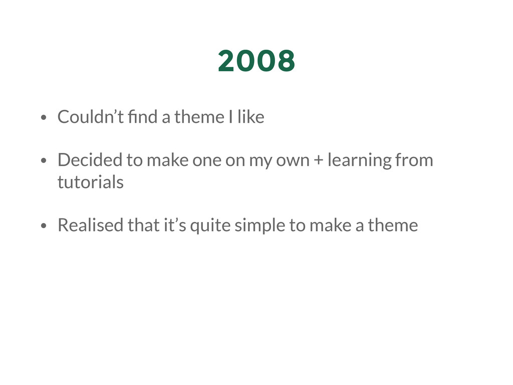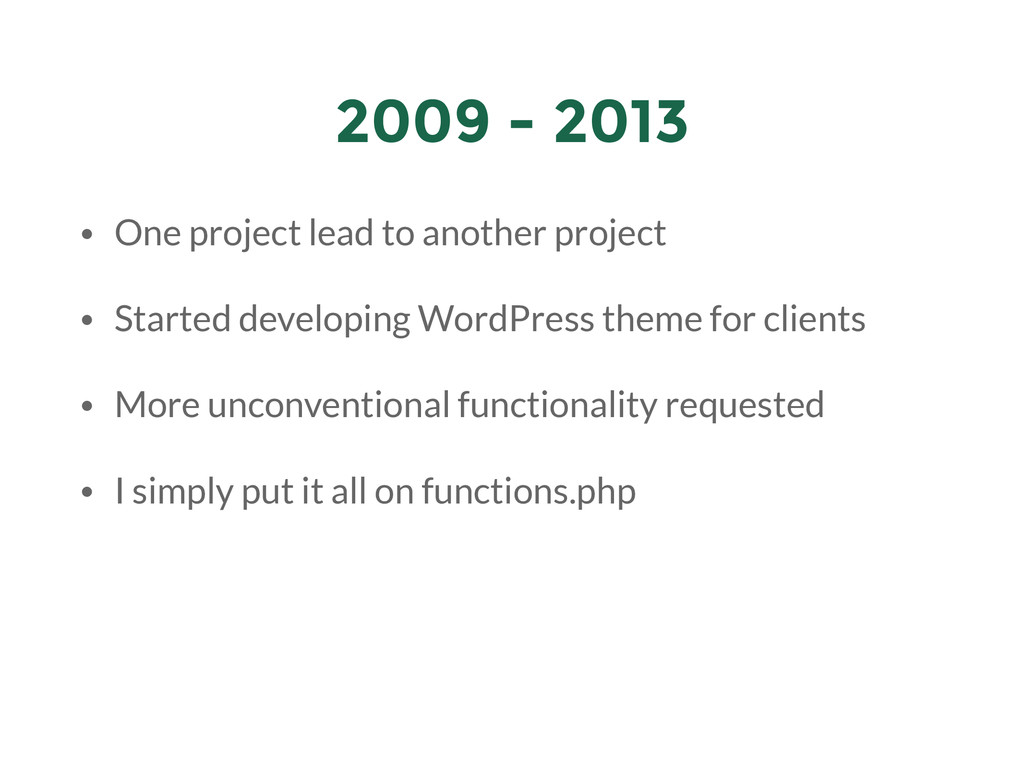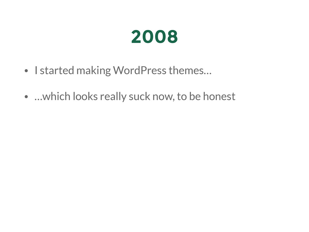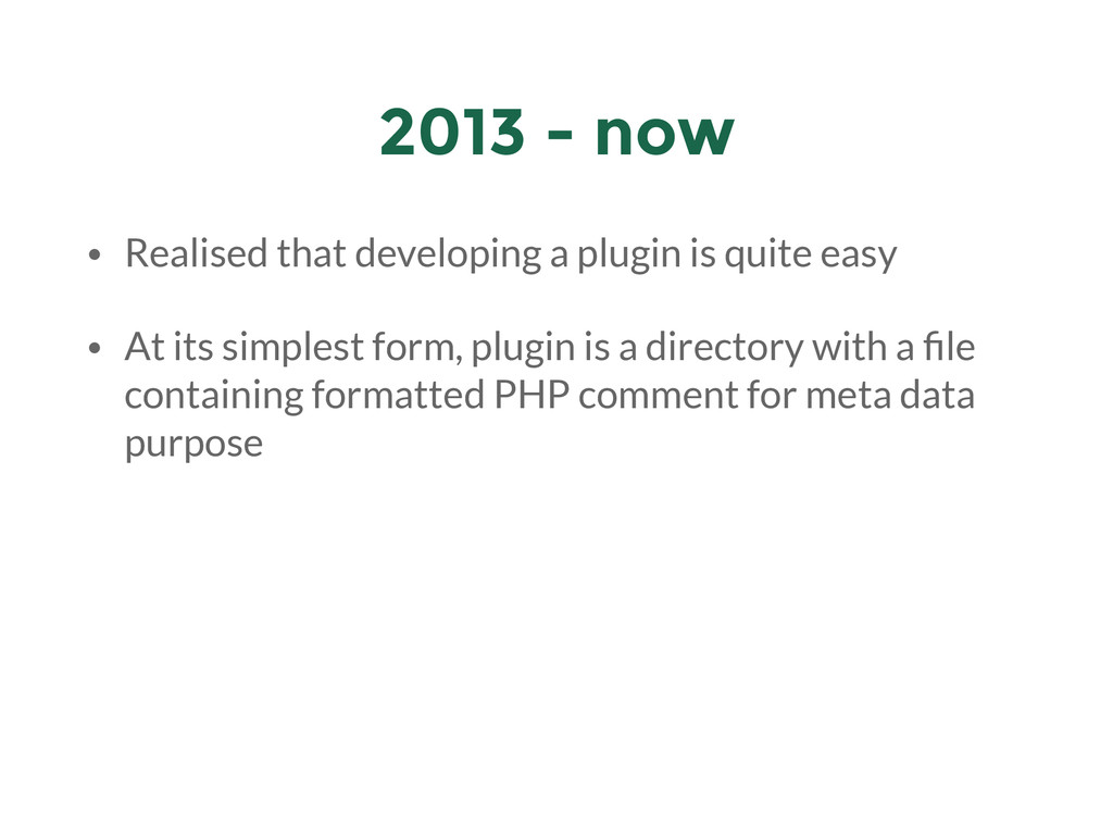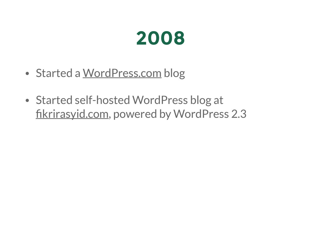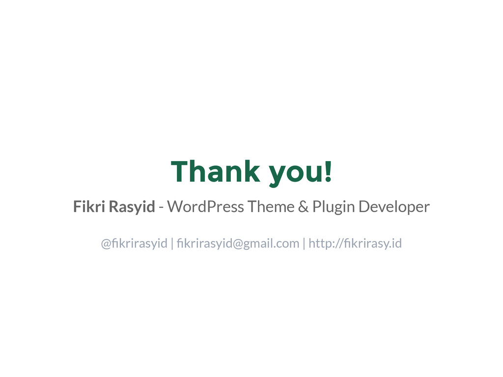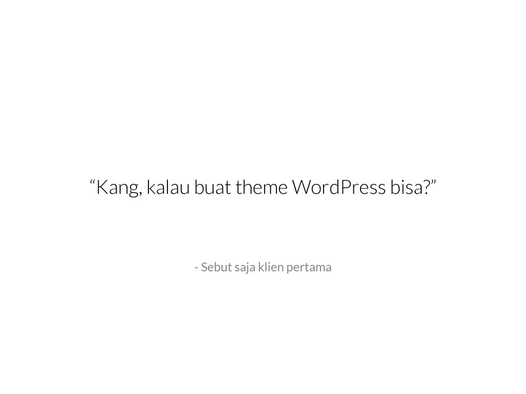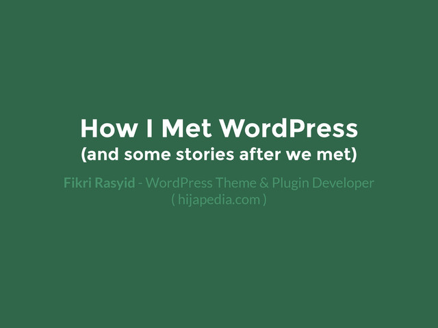 My presentation for the first WordPress Meetup Bandung. The theme of the meetup was "WordPress Experience" so I went with my experience with WordPress: how i "met" WordPress, tinkering with it, got a job from it, all the way until submitting themes & plugins to WordPress repository.