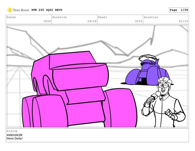 Scene 0010 Duration 24:18 Panel 0060 Duration 01:08 Dialog ANNOUNCER