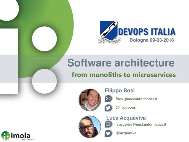 Applying Microservices patterns could be useful even in big companies, with big teams and lots of monoliths. How can we cope with the coexistence of several architectural styles in a big organization? Is it possible to let the monoliths coexist with SOA, microservices and DevOps? In our opinion, yes.