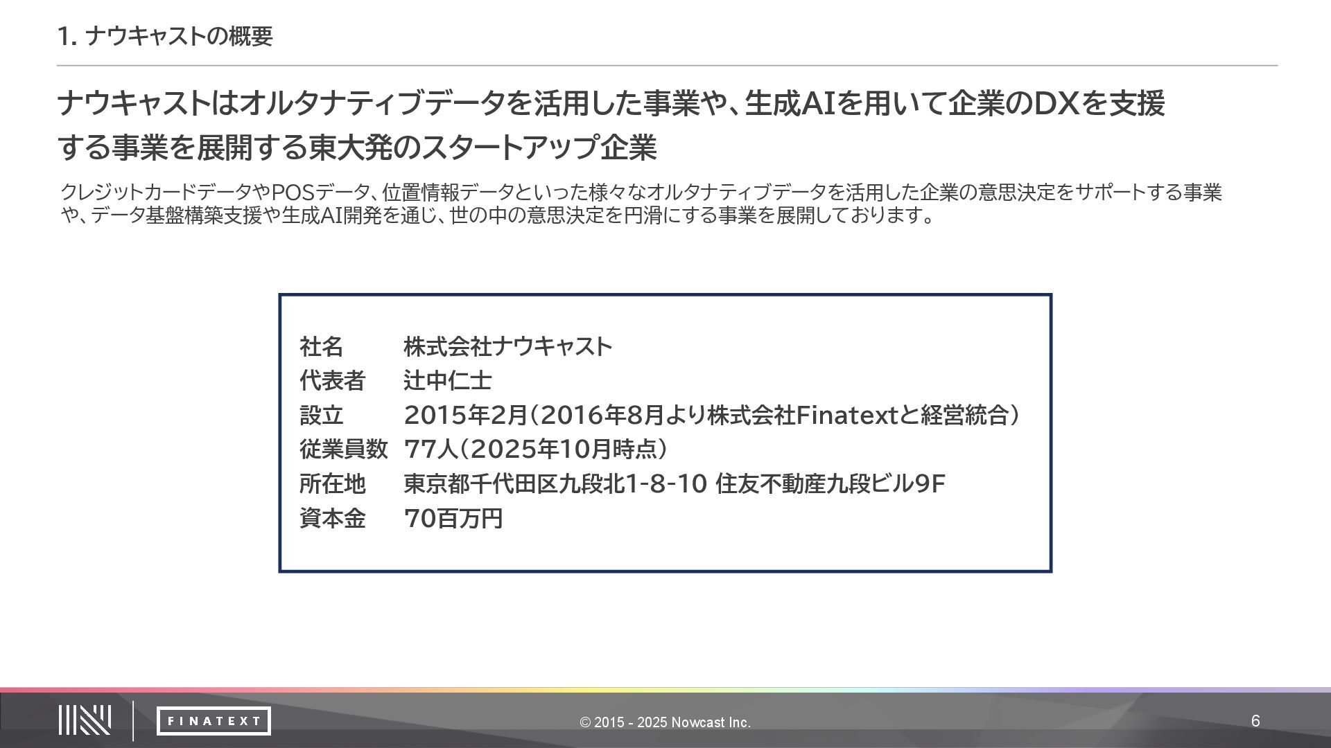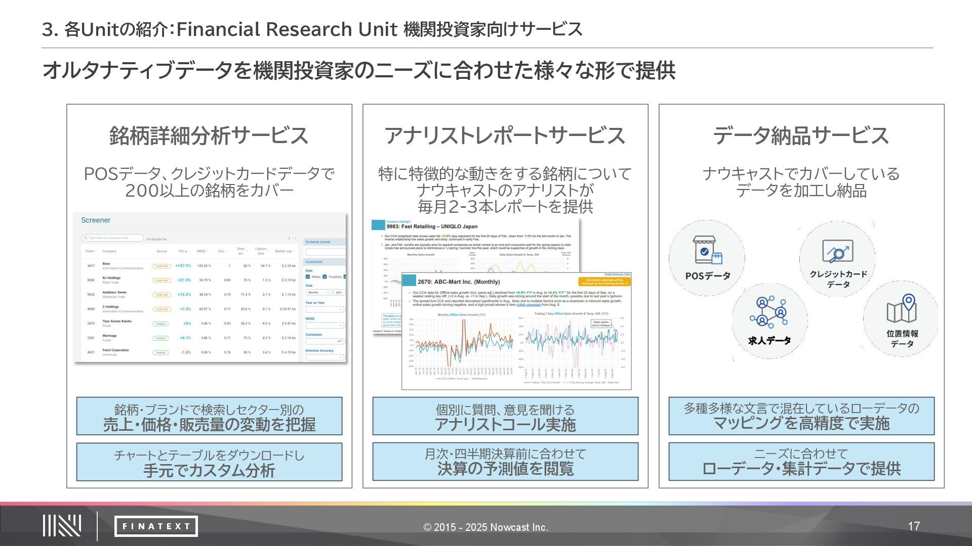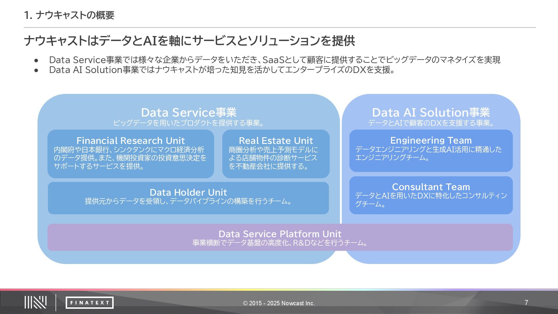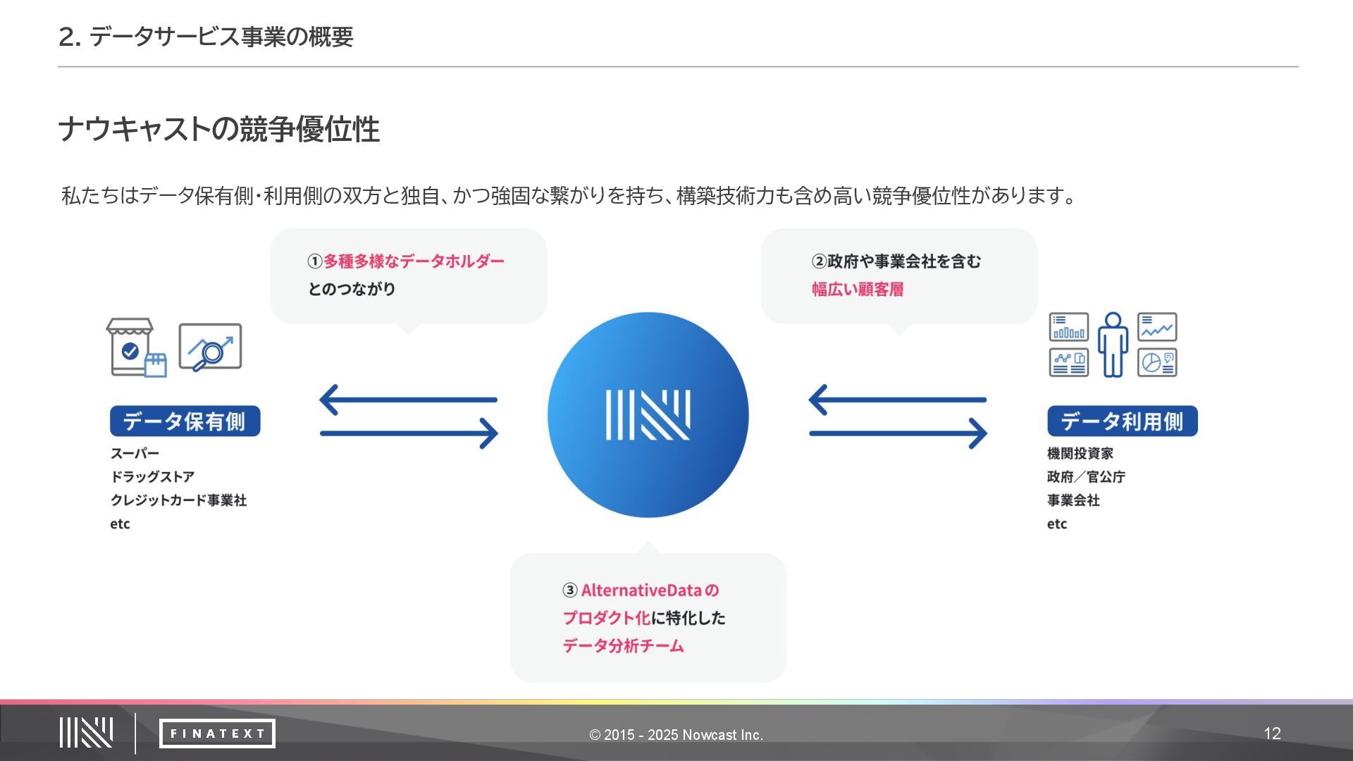 ナウキャストのデータ事業のサービス事業の説明資料です。