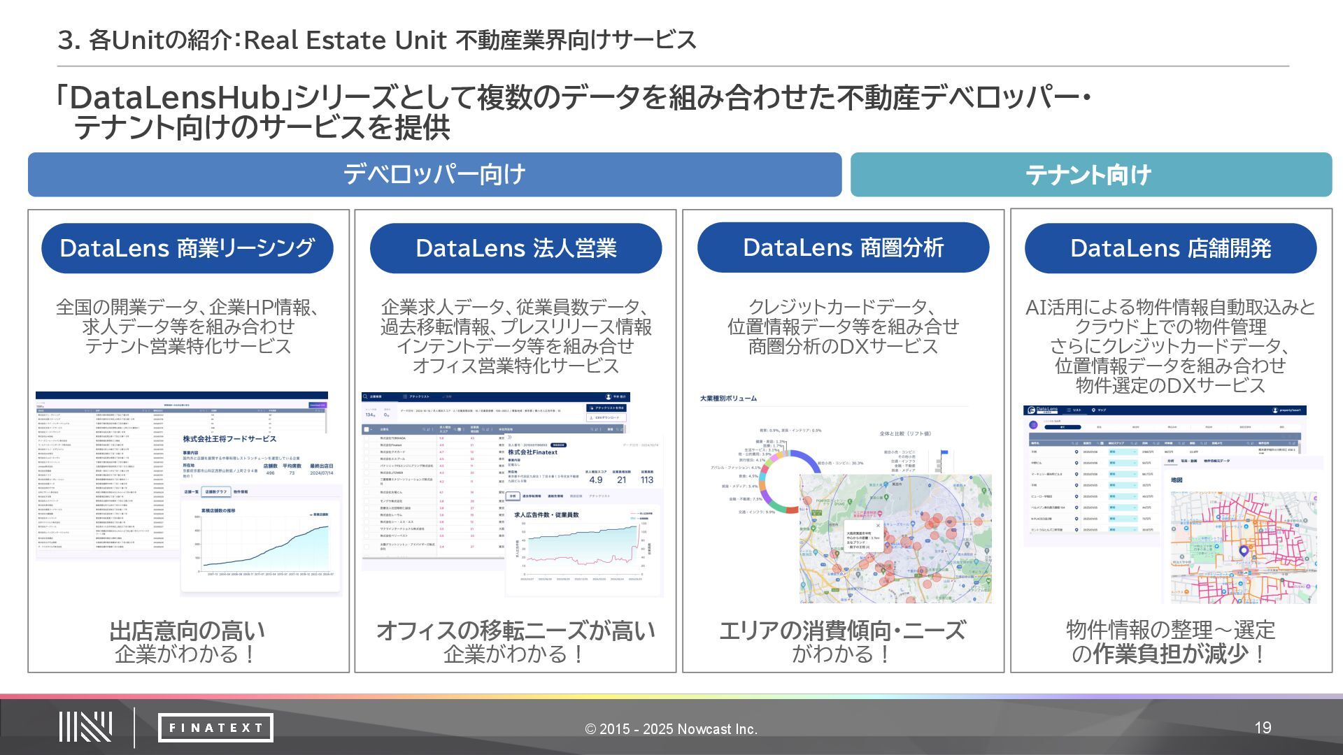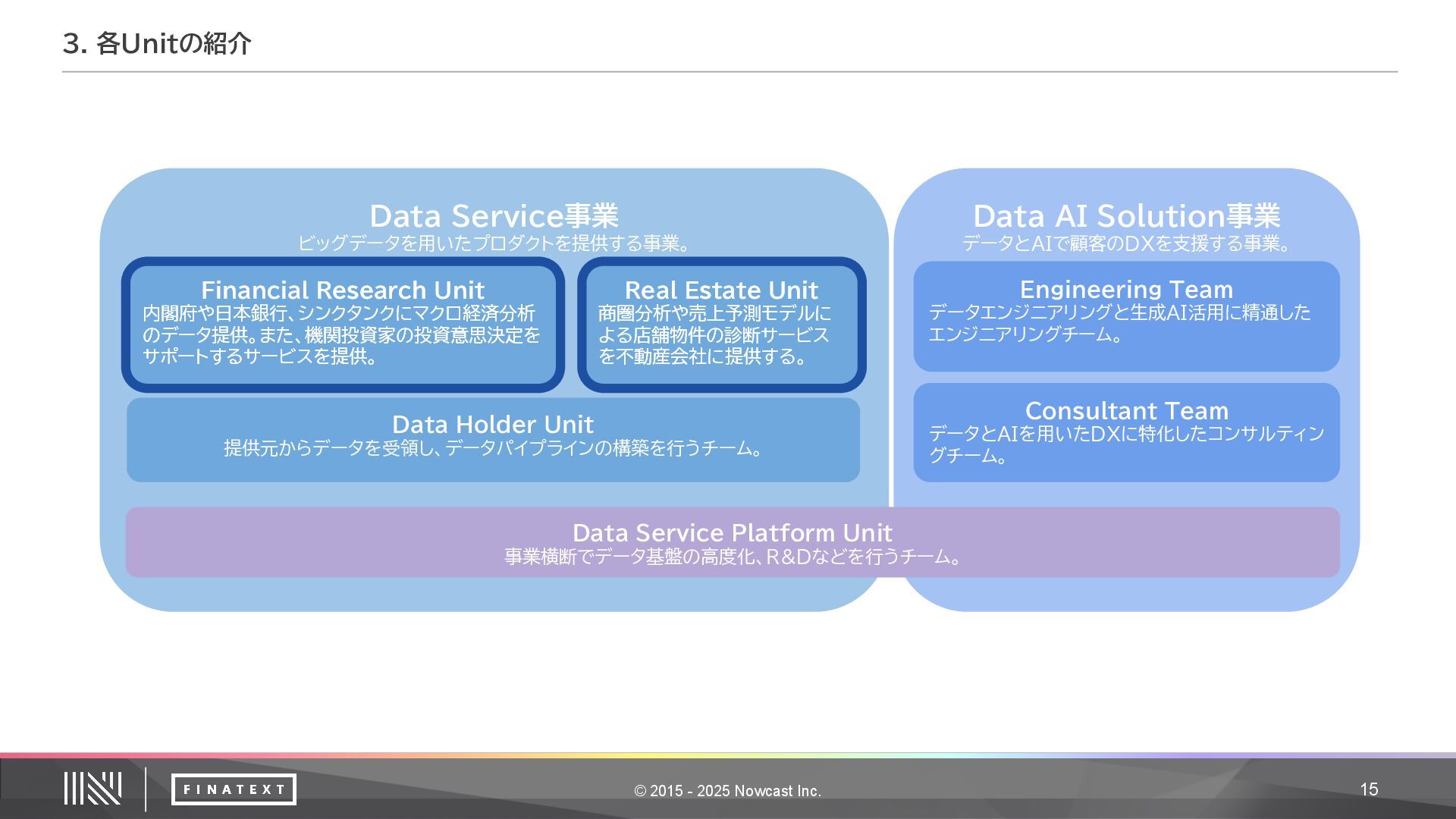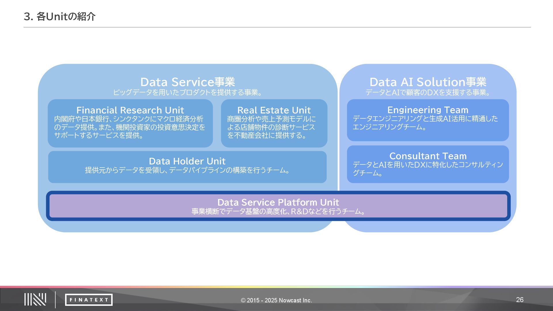 ナウキャストのデータ事業のサービス事業の説明資料です。