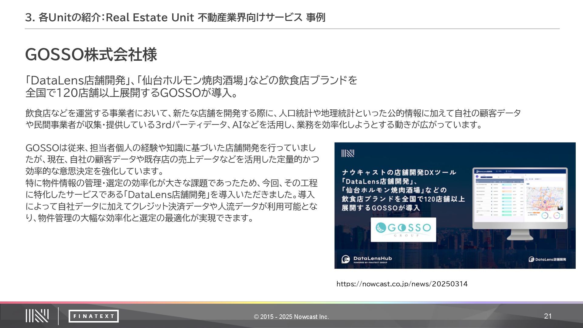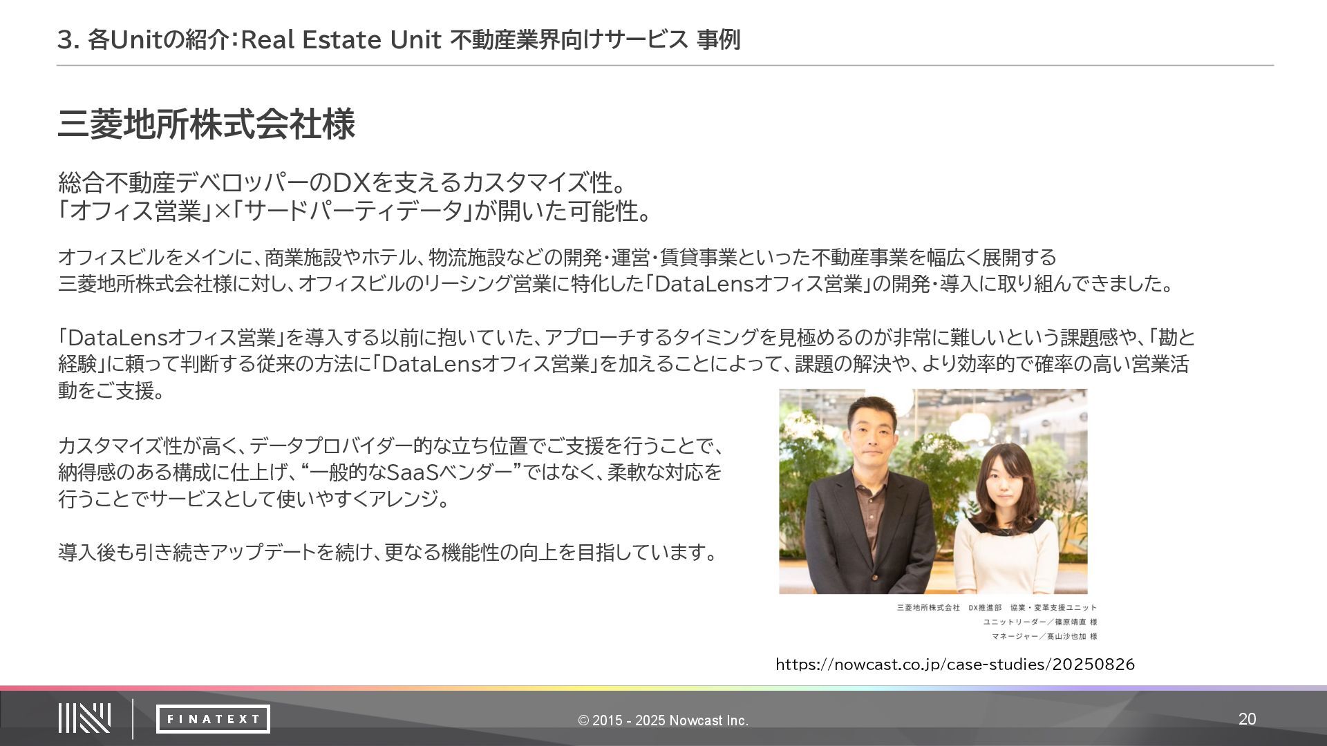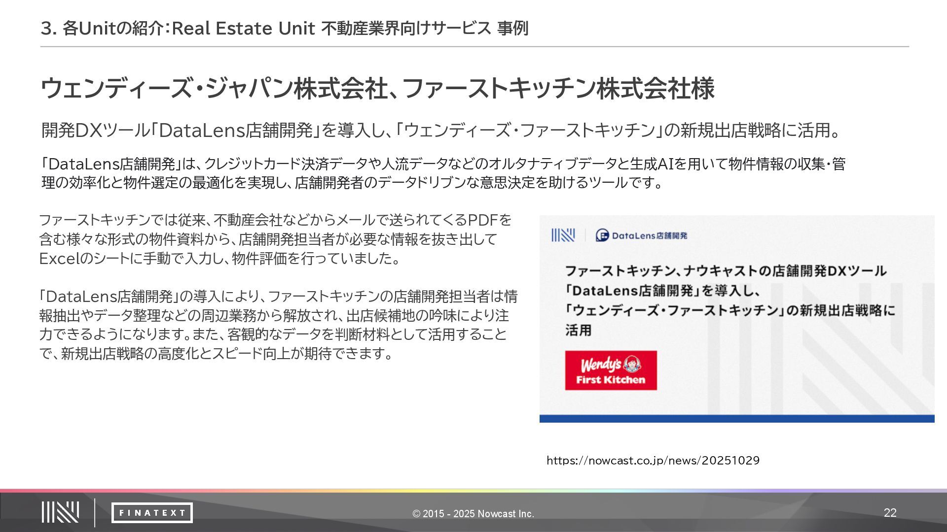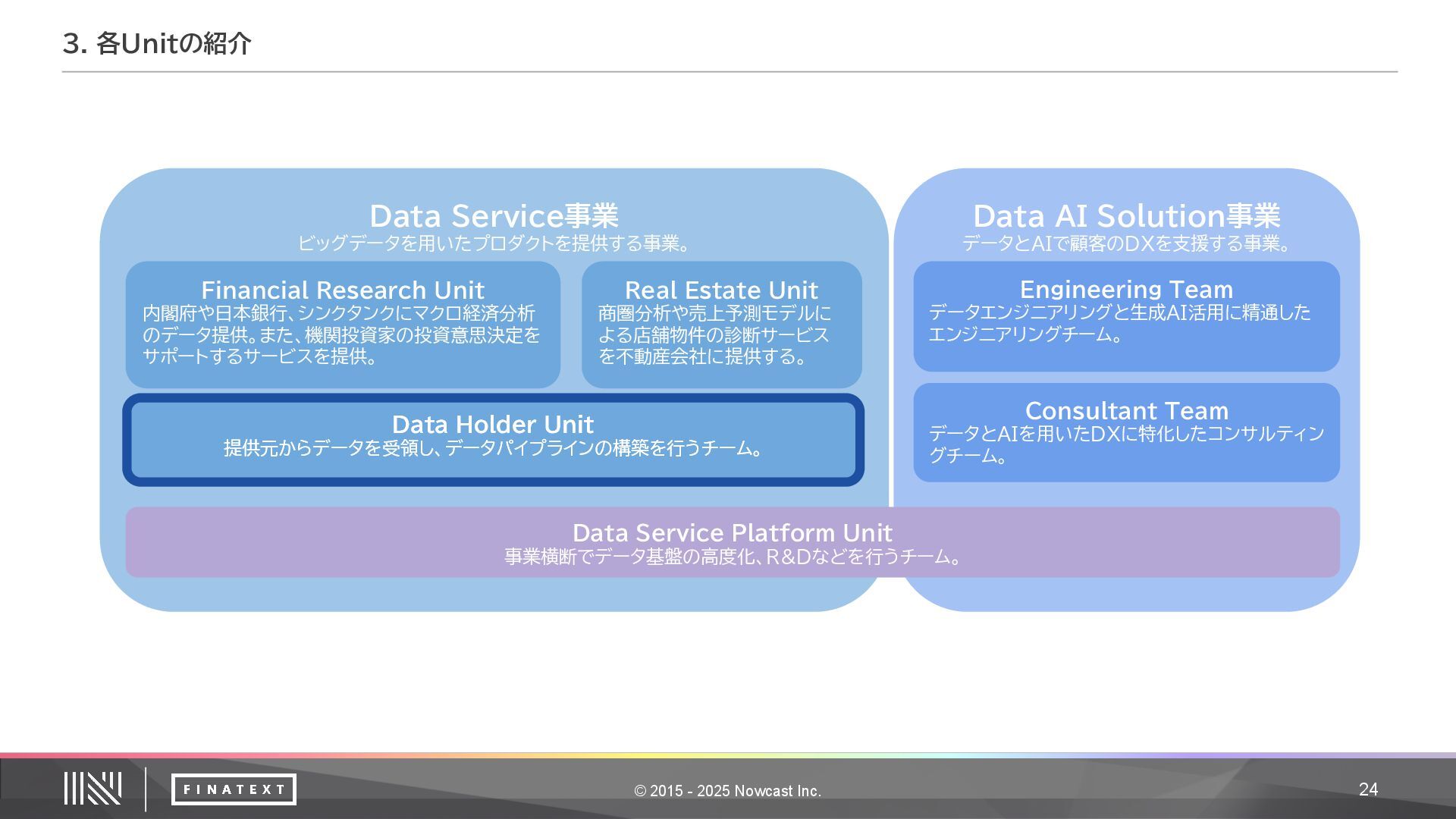 ナウキャストのデータ事業のサービス事業の説明資料です。