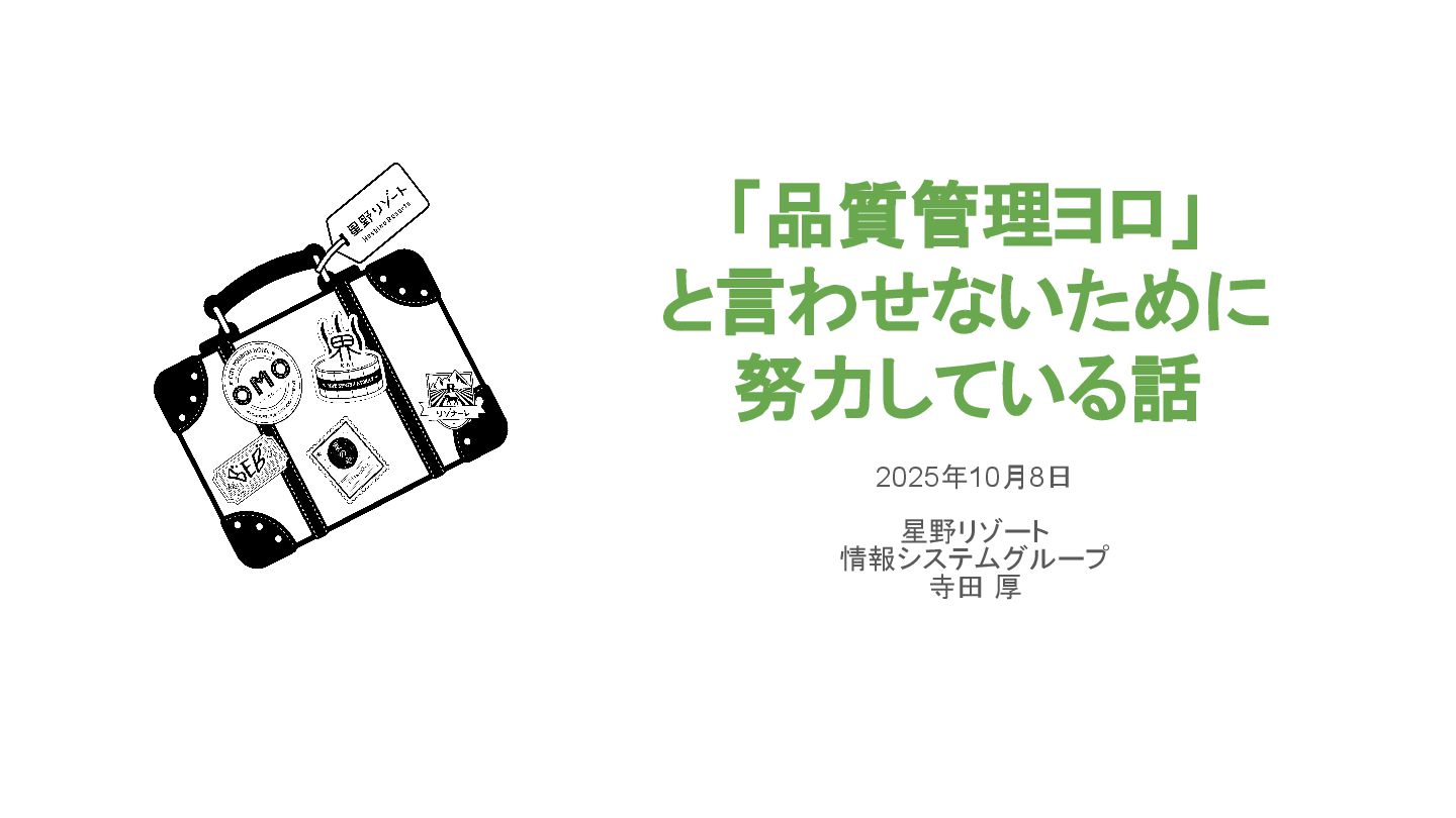 「品質管理ヨロ」 と言わせないために 努力している話 2025年10月8日 星野リゾート 情報システムグループ 寺田 厚