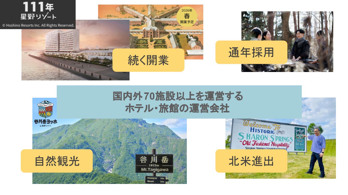 国内外70施設以上を運営する ホテル・旅館の運営会社 北米進出 自然観光 通年採用 続く開業
