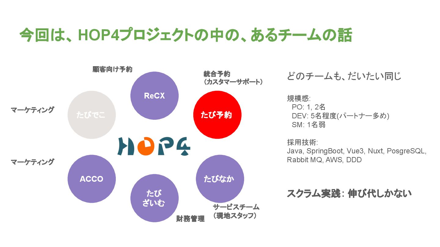 今回は、HOP4プロジェクトの中の、あるチームの話 ReCX たびでこ ACCO たび予約 たびなか たび ざいむ 顧客向け予約 マーケティング