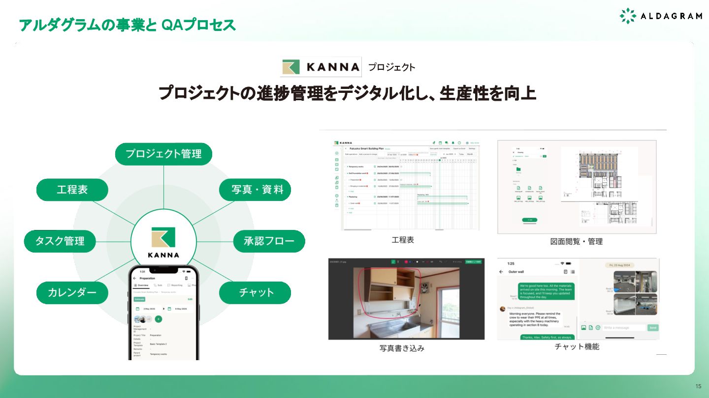 3. version : 2025-06-01 13 KANNAは工事・製造・メンテナンスなどの現場で 日常的に使われる “インフラ”プロダクト群 進捗の工程管理し、現場の写真共有、チャットによる報告など、