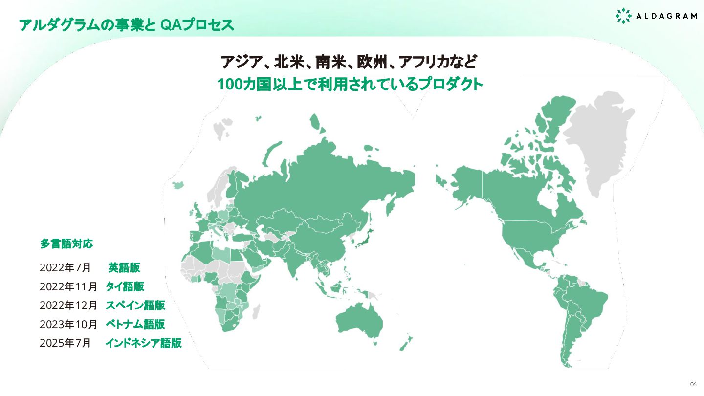 4. version : 2025-06-01 06 アジア、北米、南米、欧州、アフリカなど 100カ国以上で利用されているプロダクト 2022年7月  英語版