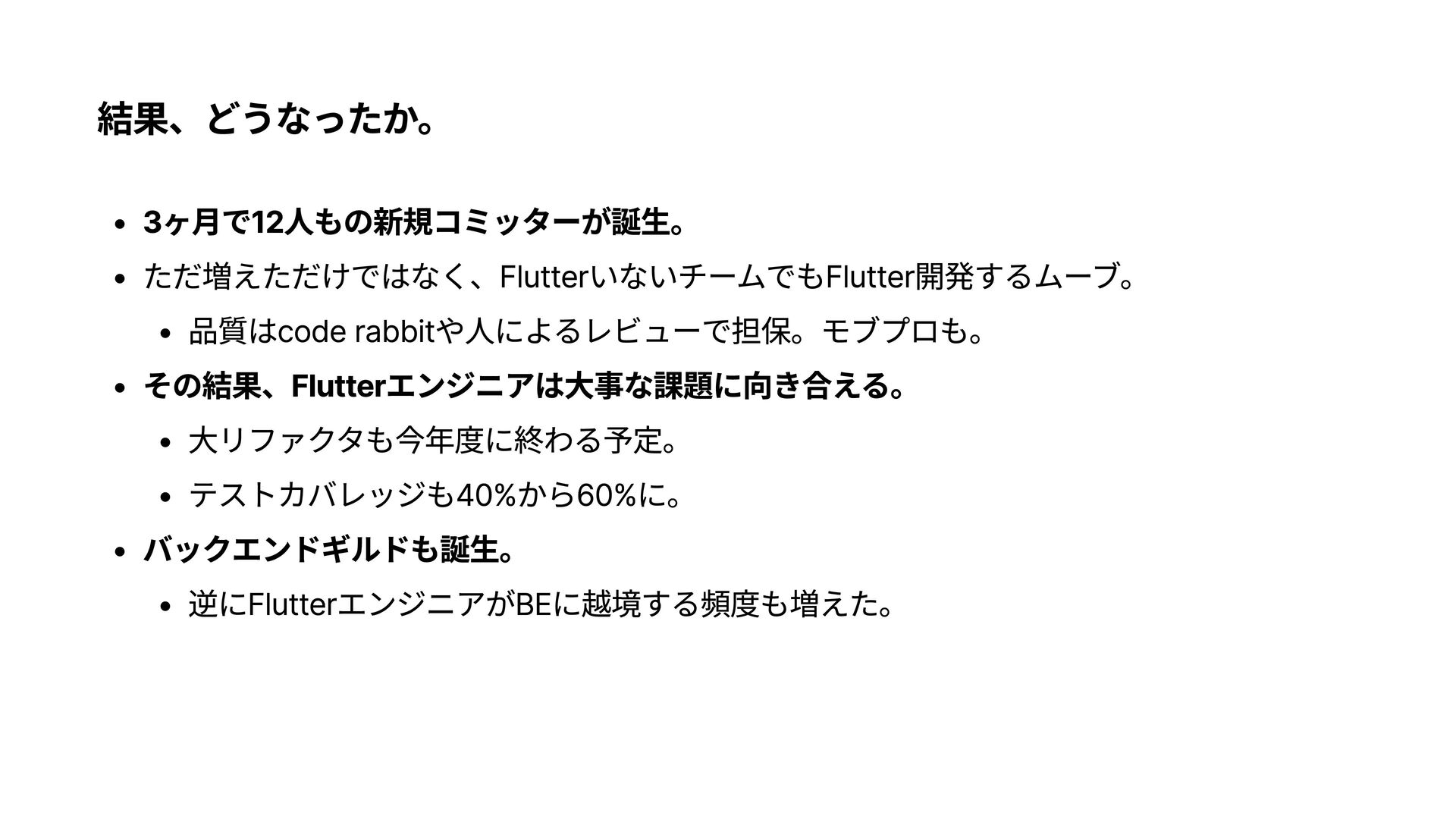 2025/11/14開催『【Flutter特集】Flutter開発の裏側 ~各社が向き合う課題と挑戦~』( https://findy.connpass.com/event/370621/ )の登壇資料です。