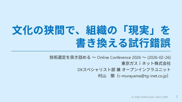 ■東京ガスiネット株式会社 DXスペシャリスト部 兼 オープンインフラユニット 村山 領さん
