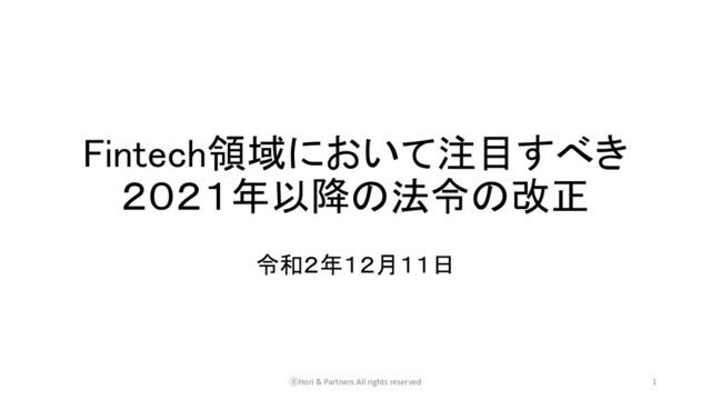 資金移動業者破綻時の資金保全 : 保険や保証会社による保証? ② 換金性(現金化)の確保 : 月1回以上の無料引出し? ③ 不正利用・不正引出しの防止 : (多要素認証?) + 改正資金決済法の滞留規制との関係も整理が必要 ⓒHori & Partners All rights reserved 26
