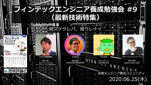 2020年6月25日に行うフィンテックエンジニア養成勉強会9(最新技術特集)のオープニング・クロージングスライドです。 https://fintech-engineer.connpass.com/event/178015/