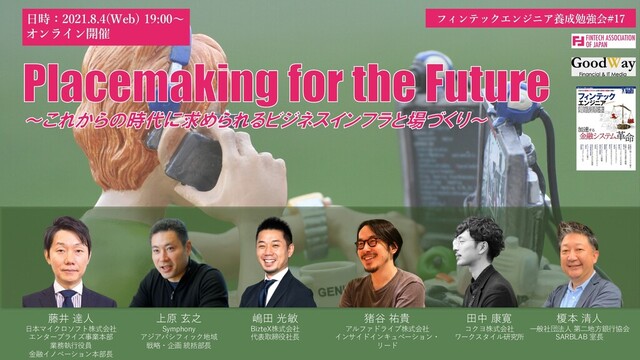 2021年8月4日に開催した『フィンテックエンジニア養成勉強会#17〜Placemaking for the Future〜』のオープニング・クロージングスライド。 https://fintech-engineer.connpass.com/event/218932/