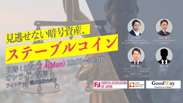 2022年7月4日に行われた見逃せない暗号資産、ステーブルコイン (フィンテック養成勉強会#23)のオープニングおよびクロージングスライド。 https://fintech-engineer.connpass.com/event/250480/