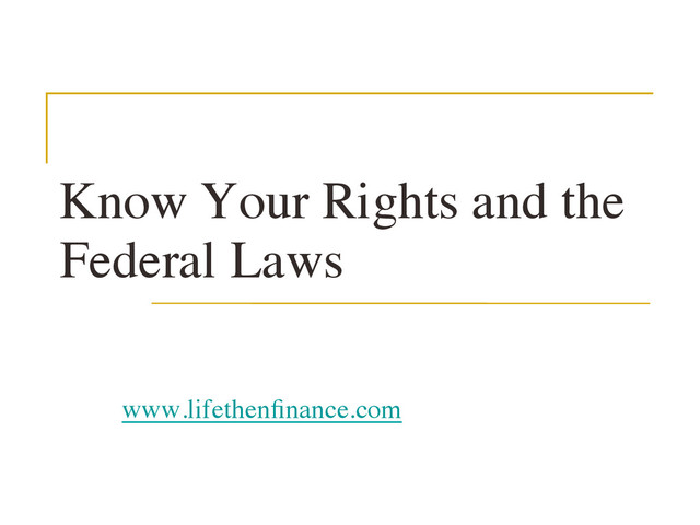 n Prohibits discrimination in credit transactions base on certain personal characteristics, such as race, color, religion, national origin, sex, marital status, age, or receive public assistance n n The Fair Credit Reporting Act (1970) n n Protects you against inaccurate or misleading information in credit files maintained by credit reporting agencies. n