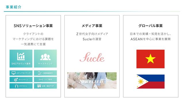 「夜ピク」 を軸にコンテンツを 発信。 Xの広告配信を活用し て総合100impを保証 しつつ、 結果とし ていいね数7,000以上と 高いエンゲージメントを獲得いたしました。 TBSの王様のブランチ 『トレンド部』 のコーナーにて、 下半期Z世代ヒ ッ ト予想の1つと し て 登場。 オリエンタルラジオ藤森さん、 山之内すず さん、 Aマッソさんに取材いただき、 約6分ほどの 特集を放映し ていただきました。 企画概要 テレビ露出 アパー ト メントホテルミマルとSucleがコラボし て、 Z世代向けに自分らしくアイテムを組み合わせて 楽しむ 『My ConceptRoom』 を制作しました。 企画概要 テレビ露出 BS TBSのBizスクエア 「Z世代の消費傾向」 特集にてご紹介いただ きま した。 BAGLE&BAGELのご担当者様と一緒に、 Sucle編集部が製品開発の裏側を取材いただ きました。 BAGEL&BAGELとSucleがコラボし、 『森のく ま サンド~Sucleコラボベーグル フルーツサンド~』 を 制作。 全4店舗にて 、 発売初日に即完売となり ま した。 タイアップ 実 績