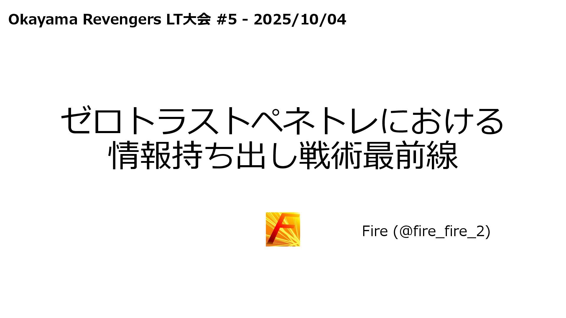 ゼロトラストペネトレにおける 情報持ち出し戦術最前線 Fire (@fire_fire_2) Okayama Revengers LT大会 #5 - 2025/10/04