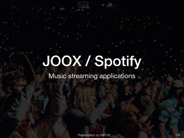 low cost the same but Spotify has a quality of sound are better than JOOX, Spotify has 30 million songs and supports many devices including It has more types of music than JOOX, Even though JOOX has multi-function, Spotify meets our criteria. Therefore, we recommend you to subscribe Spotify. Presentation by PAFUN 6/6