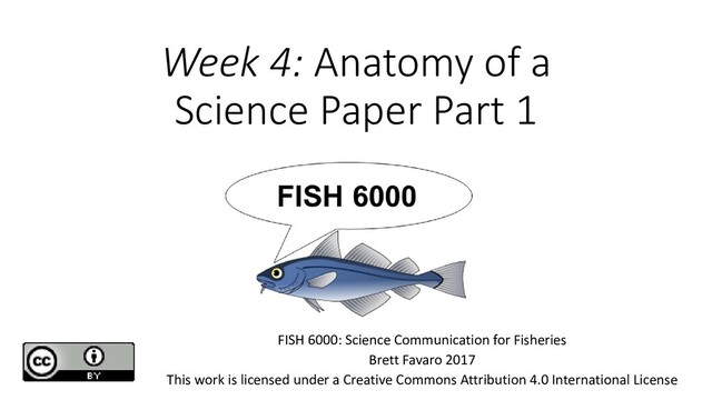 These will be your goal setting team for the semester • At every class meeting, you will assemble with your writing team. • Discuss with each of your teammates: • What were your goals last week? • Did you achieve them? Why or why not? • What did you write last week? • What is your goal for THIS week? • Sample template available on FISH 6000 website • Write these down (one entry per class). At the end of the semester, you will receive a completion grade Goal-setting, peer support, reflection Examination, blame, fault, bragging Time ~ 10 minutes