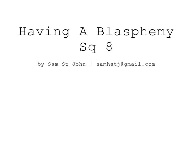 "I mean, pull the holy stick out of your ass. So what, I wanted to be a different person for a little bit. It's not exactly easy being the most hated being in existence." Having A Blasphemy Sq 8 by Sam St John | [email protected] Page 17/32