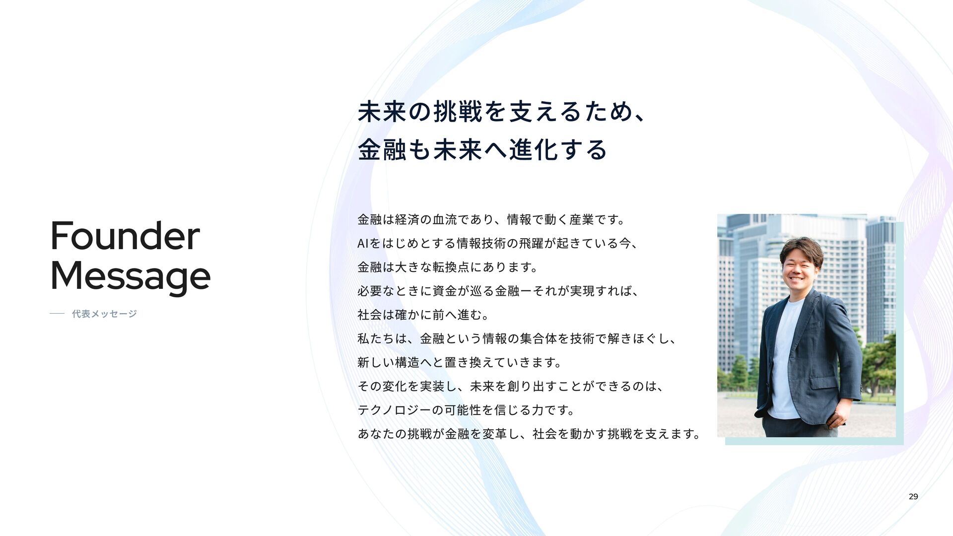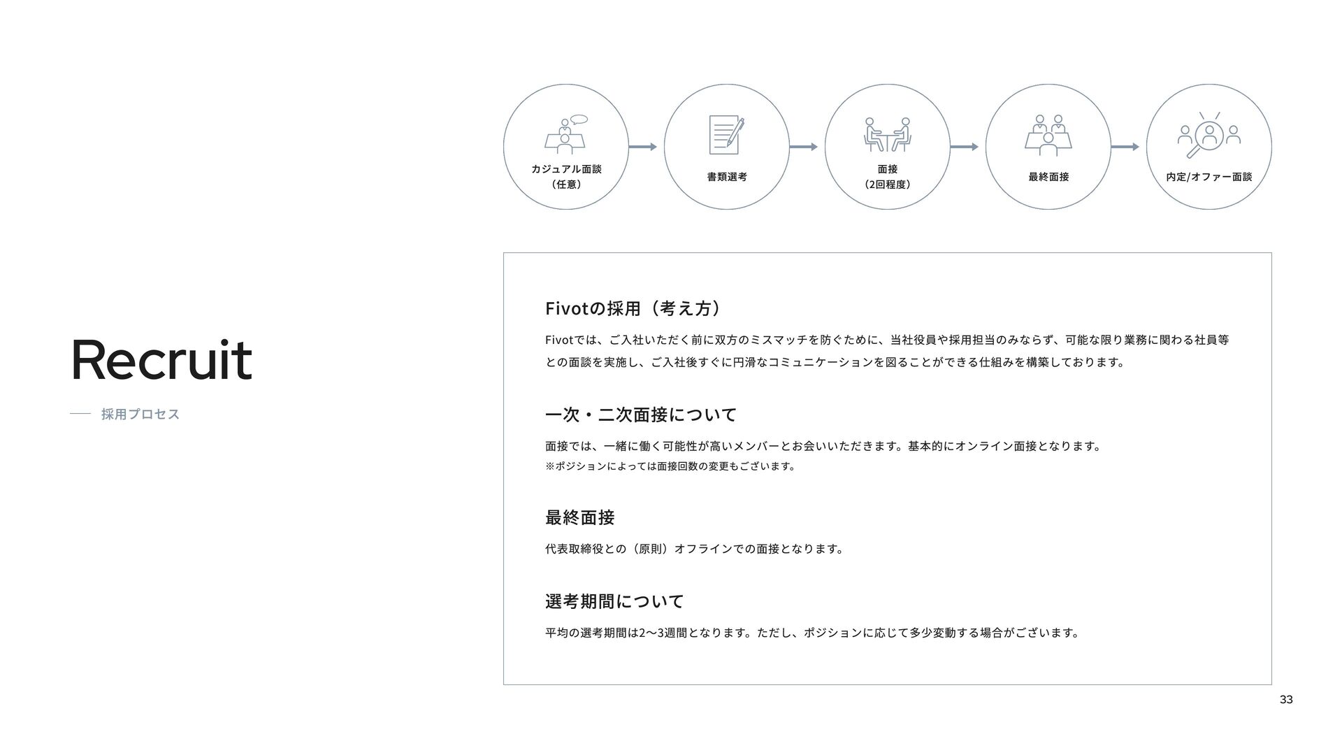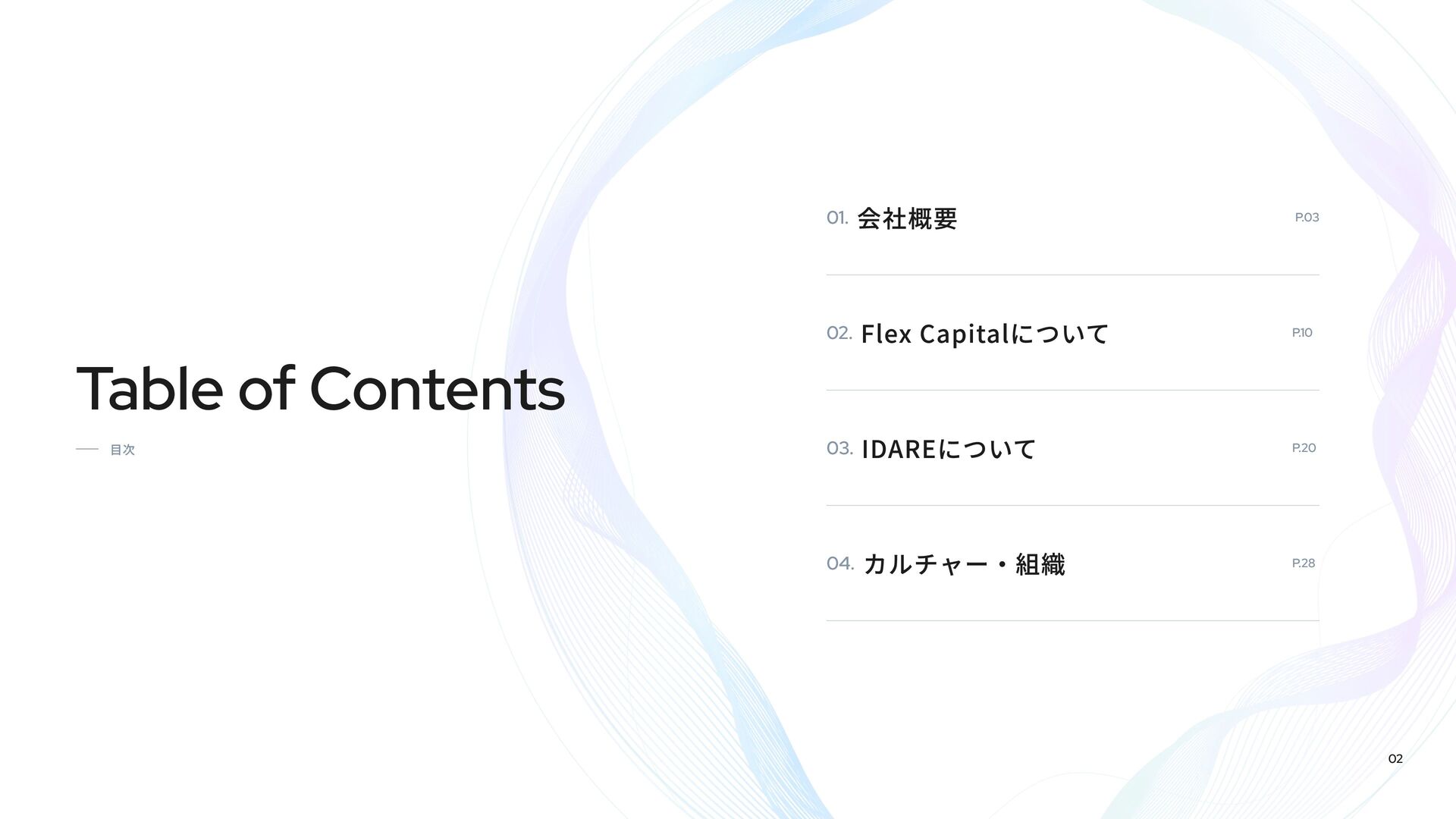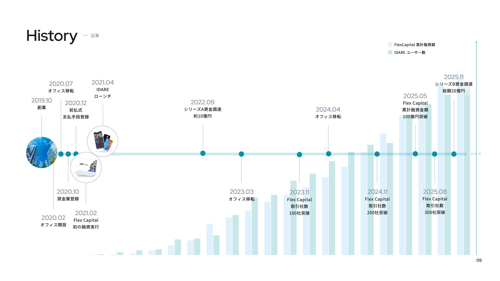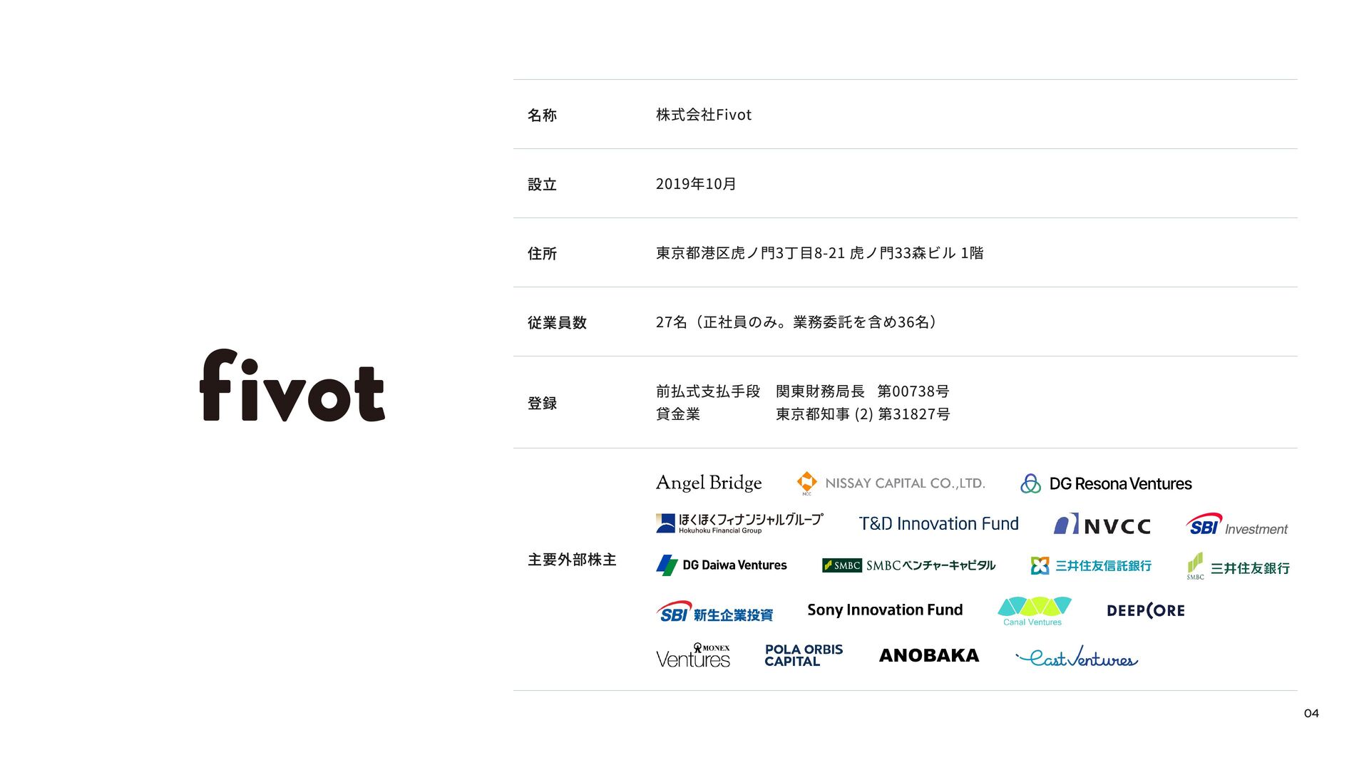 Fivotのカルチャーデックは、「新しい産業構造に、新しいお金の流れを作る。」という私たちのミッションをどのように実現しようとしているかを紹介しています。 スタートアップ向け融資事業「Flex Capital」と個人向けキャッシュレスアプリ「IDARE」のふたつのプロダクトを通じて、資金の流れをより効率的にし、新たな産業の成長を支えています。