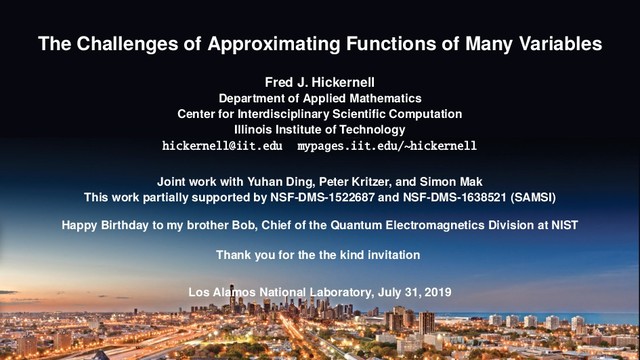 Hickernell Department of Applied Mathematics Center for Interdisciplinary Scientific Computation Illinois Institute of Technology [email protected] mypages.iit.edu/~hickernell Joint work with Yuhan Ding, Peter Kritzer, and Simon Mak This work partially supported by NSF-DMS-1522687 and NSF-DMS-1638521 (SAMSI) Happy Birthday to my brother Bob, Chief of the Quantum Electromagnetics Division at NIST Thank you for the the kind invitation Los Alamos National Laboratory, July 31, 2019