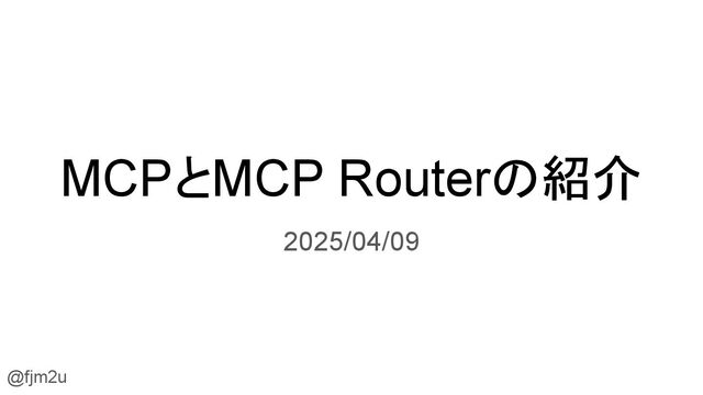 MCPとMCP Routerの紹介 2025/04/09 @fjm2u
