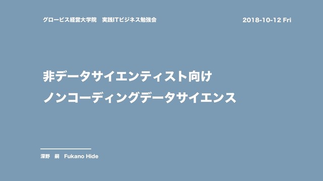 グロービス大学院 ITビジネス勉強会(2018-10-12開催)での登壇資料です。参加者の殆どが非エンジニアであったため、データ分析に興味を持っていただき、どこから始めれば良いのか?を具体的に導くことを目標に資料を作成しました。