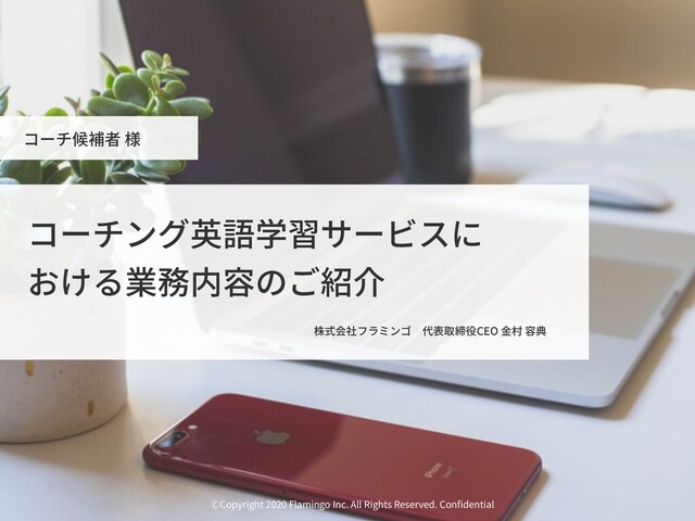1. ⒸCopyright 2020 Flamingo Inc. All Rights Reserved. Confidential コーチ候補者 様