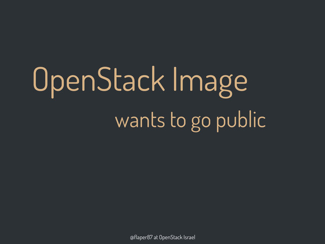OpenStack's Image service has been doing a great job on providing images throughout OpenStack and as the number of cloud services grow, the time for this service to be public has arrived. In this talk, I'll take you through different deployments strategies, in progress tasks and future ideas that will make all this possible.