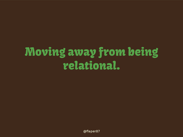 A small walkthrough about what it means, from a developers stand point, to move away from our well-known relational world.