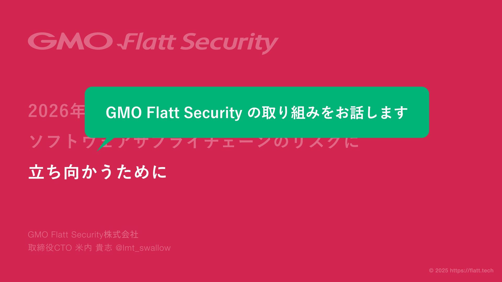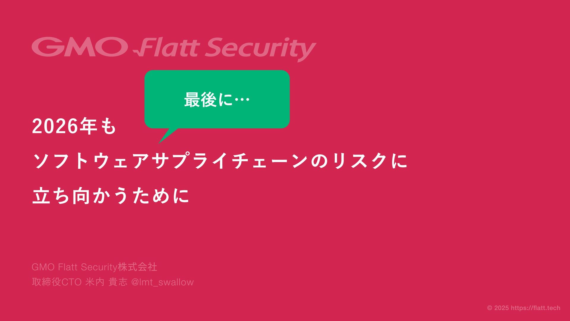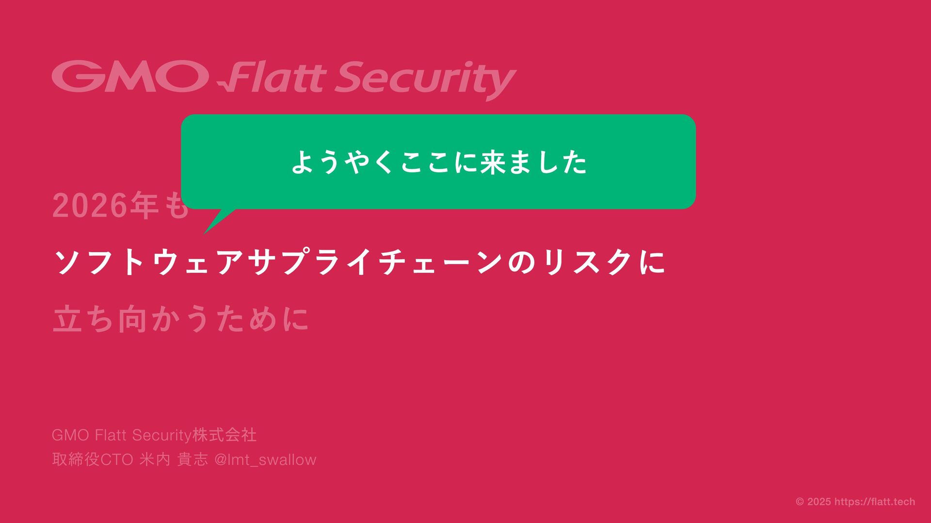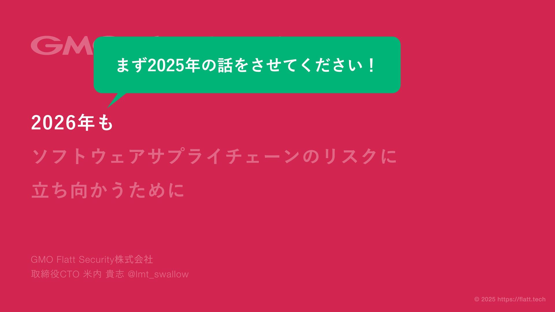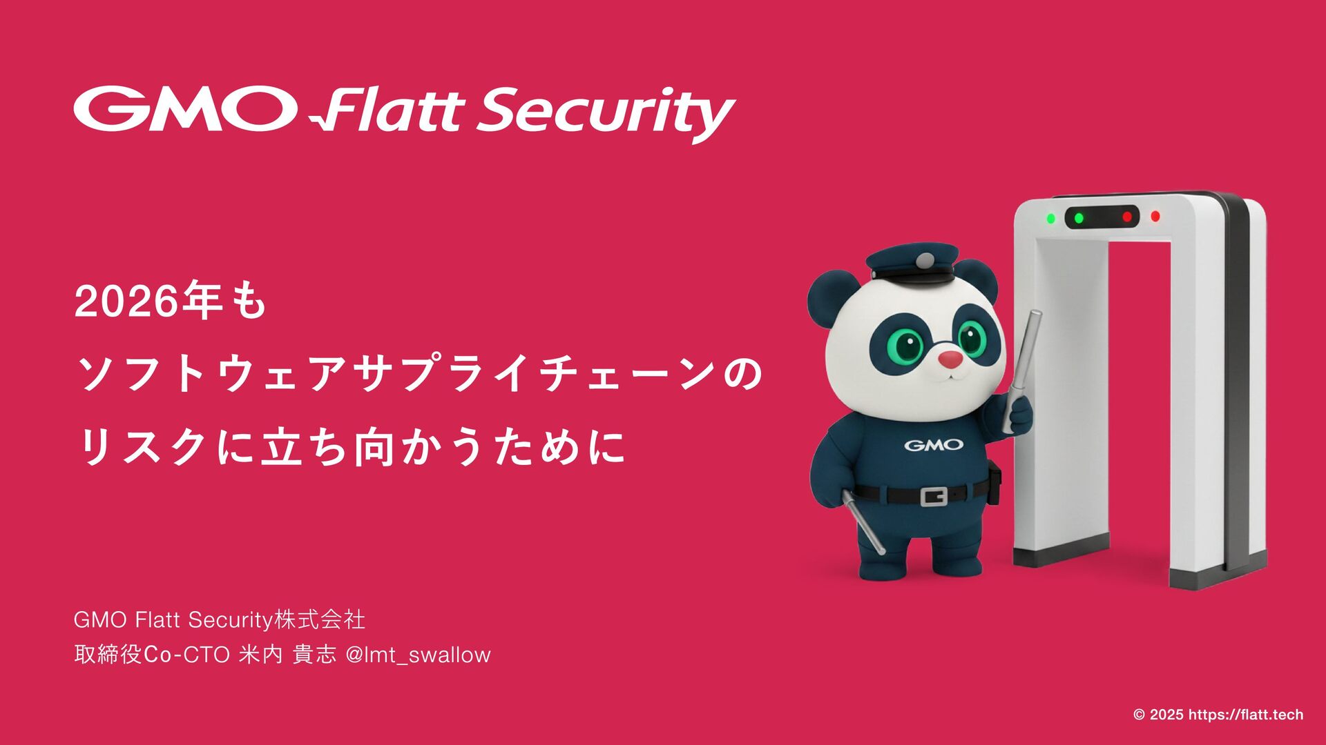 2026年も ソフトウェアサプライチェーンの リスクに立ち向かうために GMO Flatt Security株式会社 取締役Co-CTO 米内 貴志 @lmt_swallow