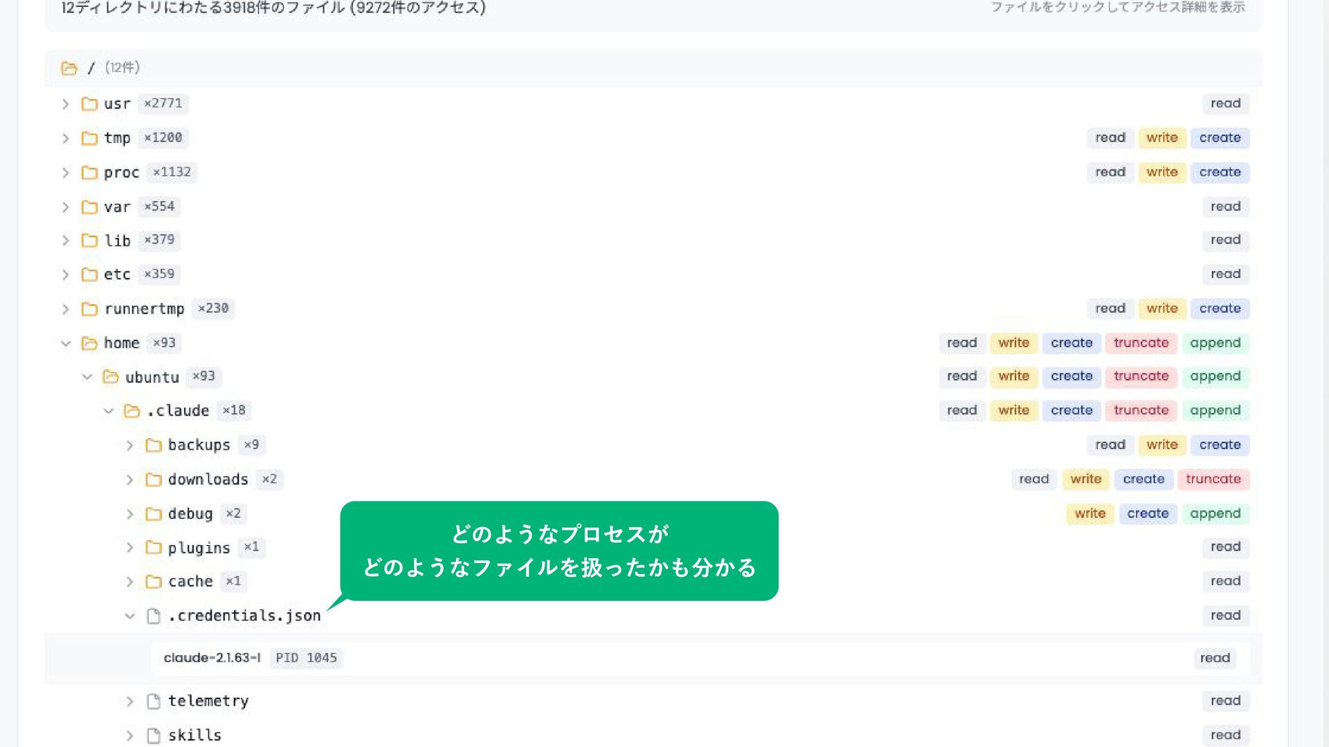 どのようなプロセスが どのようなファイルを扱ったかも分かる © 2025 GMO Flatt Security Inc. All Rights