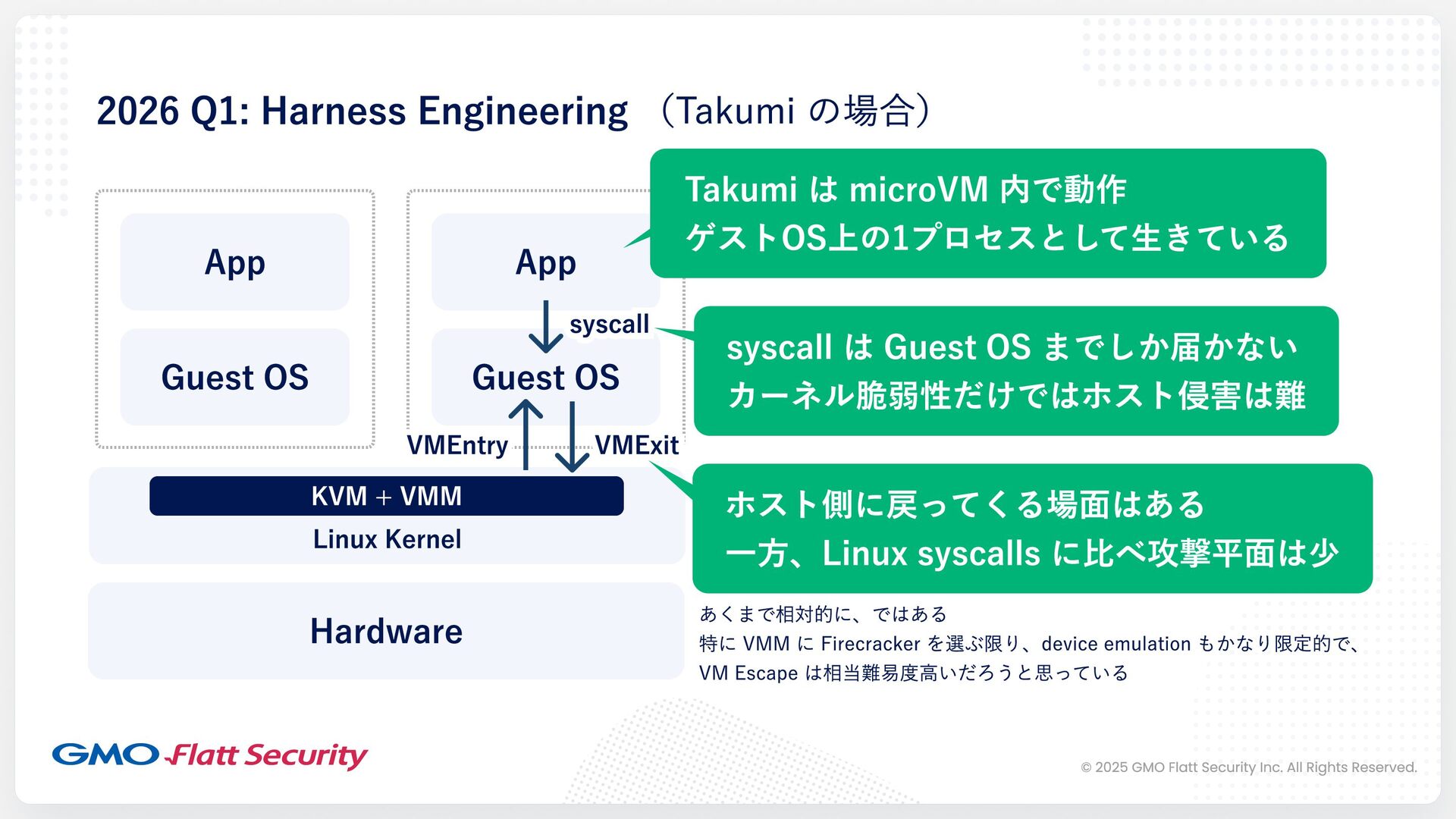 2026 Q1: Harness Engineering (Takumi の場合) Takumi は microVM 内で動作