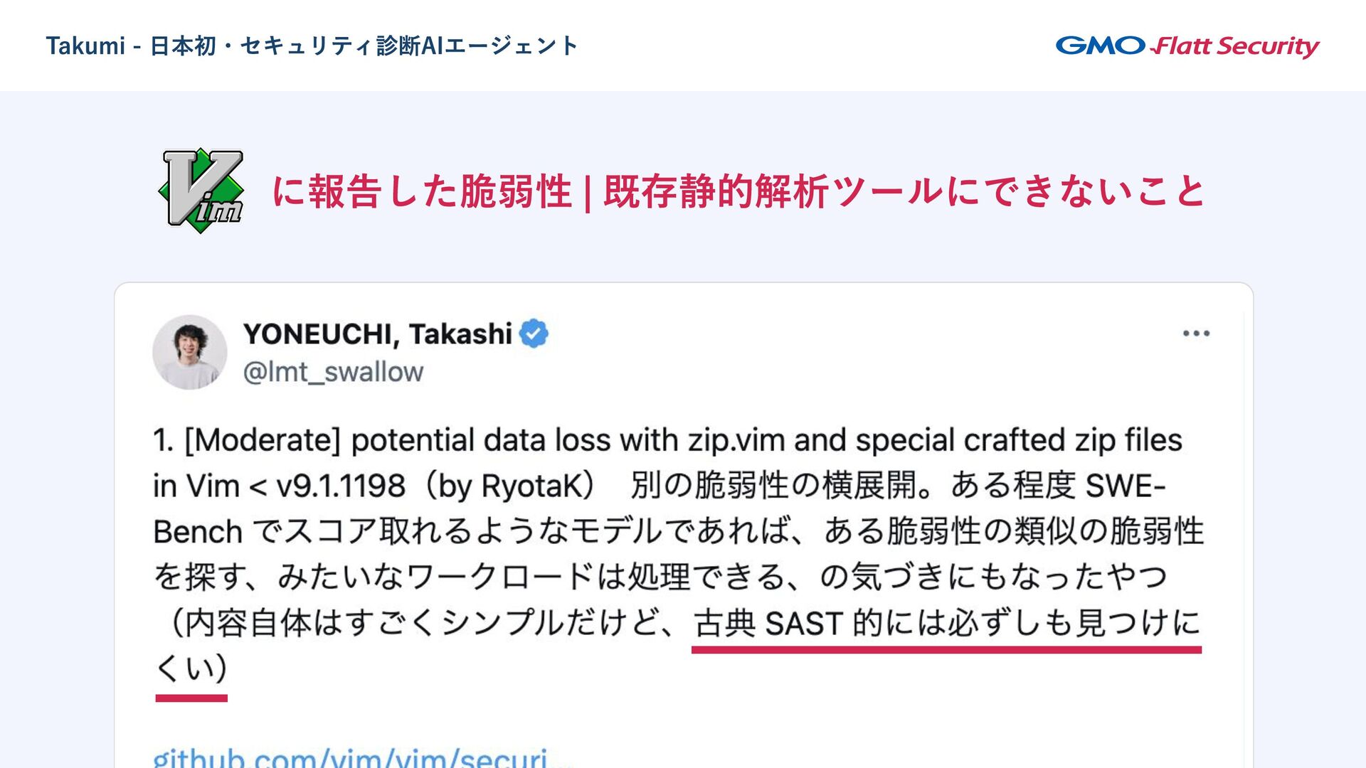 セキュリティ診断AIエージェント Takumi がもたらす変化 - 著名OSS 向け0-dayリサーチを例に