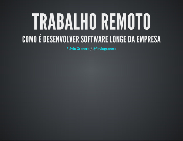 Nesta palestra falo sobre minha experiencia de 5 anos trabalhando como desenvolvedor para empresas do exterior. Compartilho os desafios, as vantagens e desvantagens de poder trabalhar de onde quiser, e ainda assim entregar software de qualidade. Apresento ainda dicas e ferramentas para a integração de equipes distribuídas, trabalho em home office e informações para quem deseja atuar nesse mercado.