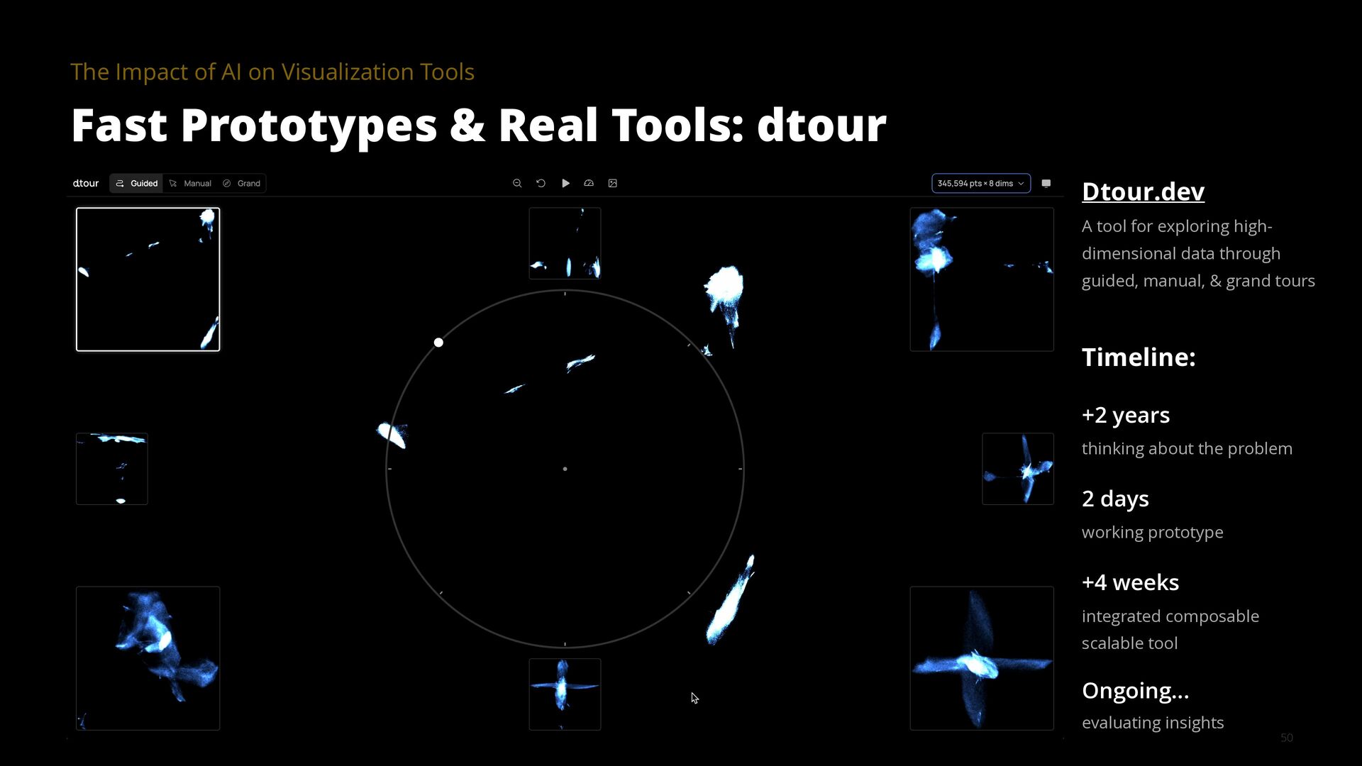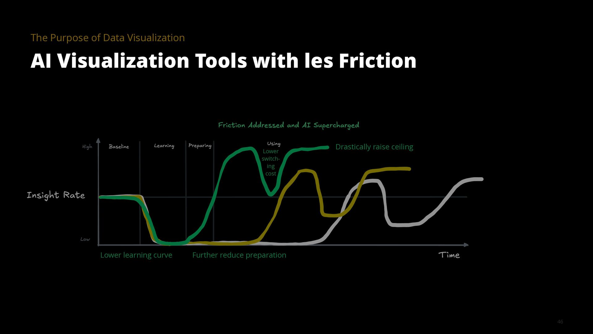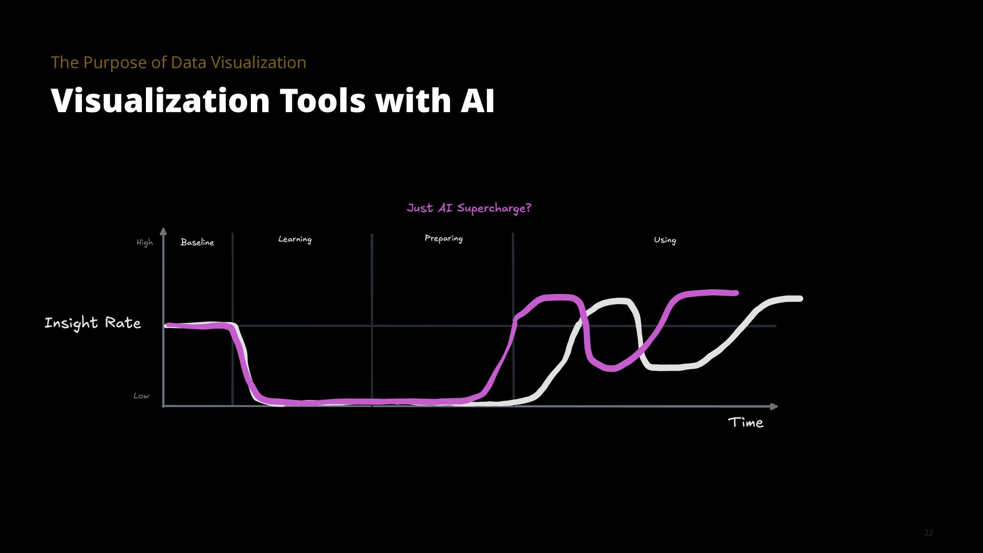 The goal of a visualization tool is to help users gain insights faster. Yet many tools have had limited impact. The learning curve is too high and the most meaningful insights are often hidden in the details, for example, in how data was collected, cleaned, and analyzed. AI is changing this equation by collapsing implementation time, lowering learning curves, and surfacing contextual details that make visualizations truly informative.