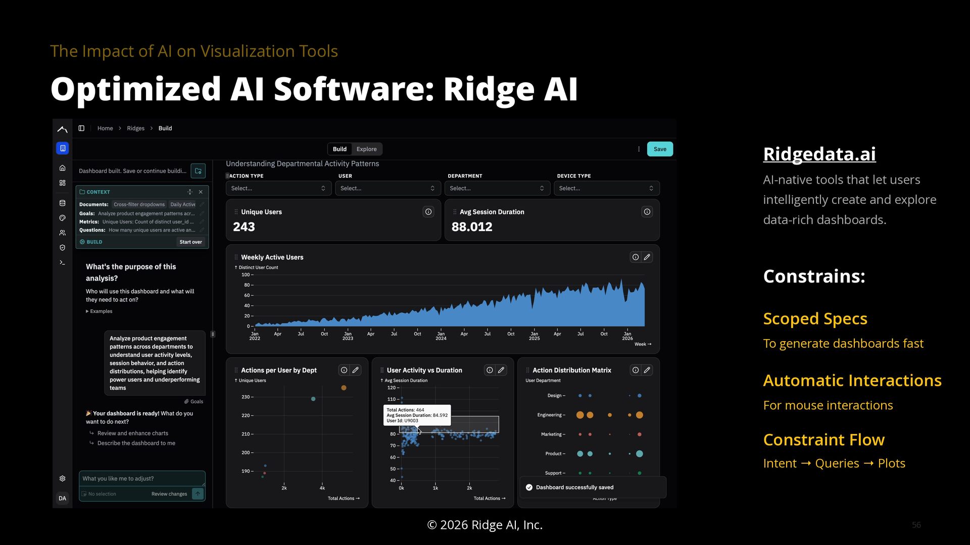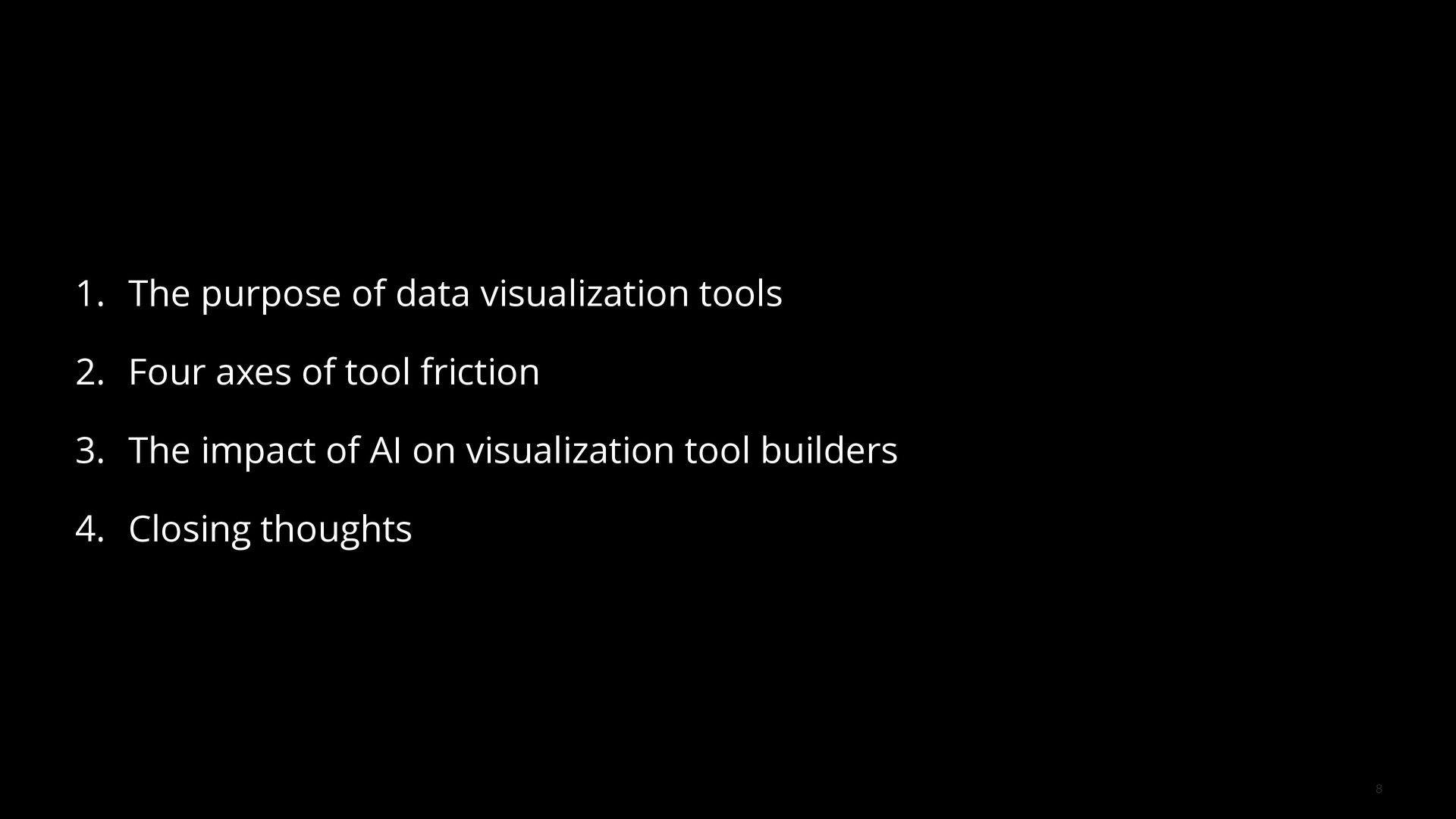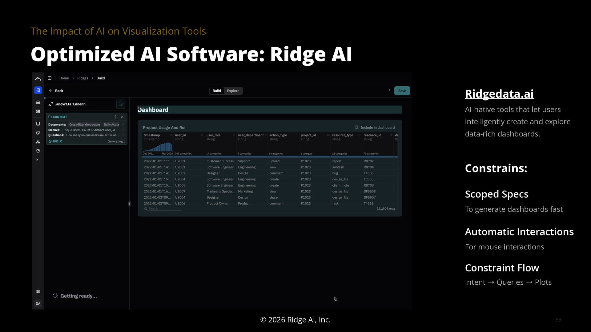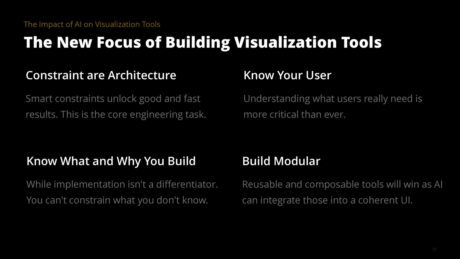 The goal of a visualization tool is to help users gain insights faster. Yet many tools have had limited impact. The learning curve is too high and the most meaningful insights are often hidden in the details, for example, in how data was collected, cleaned, and analyzed. AI is changing this equation by collapsing implementation time, lowering learning curves, and surfacing contextual details that make visualizations truly informative.